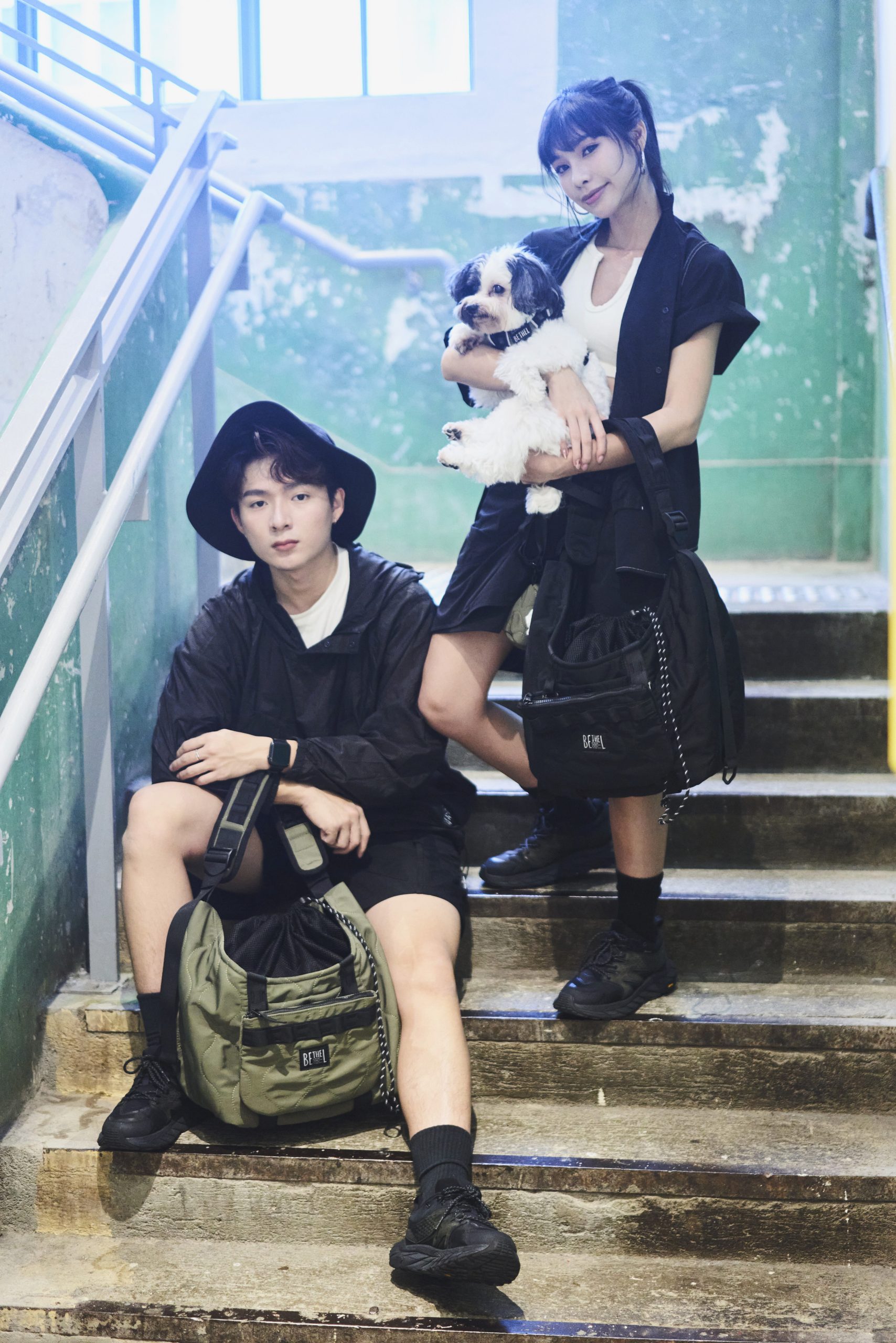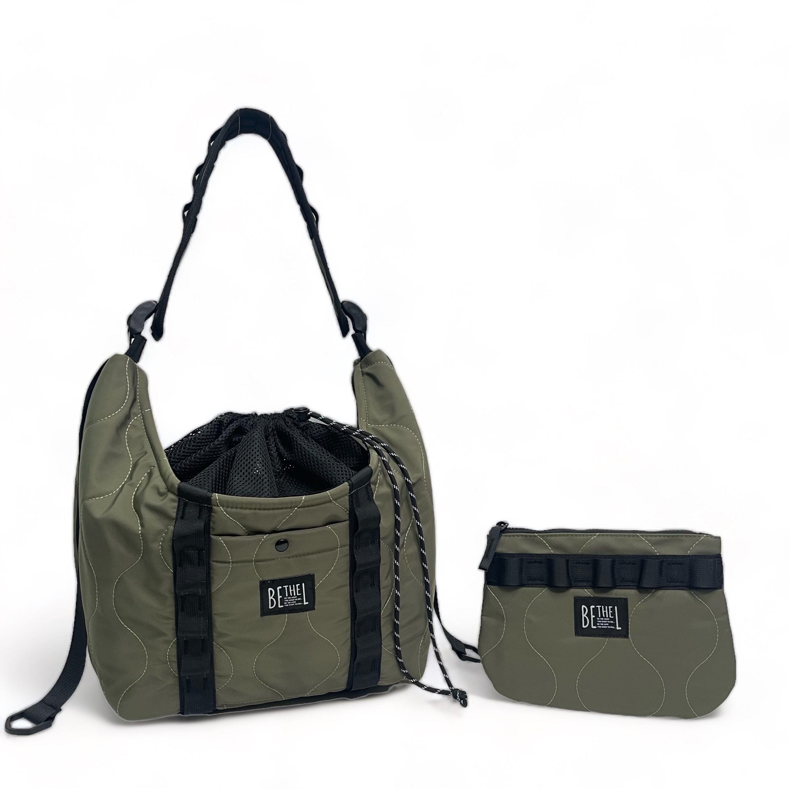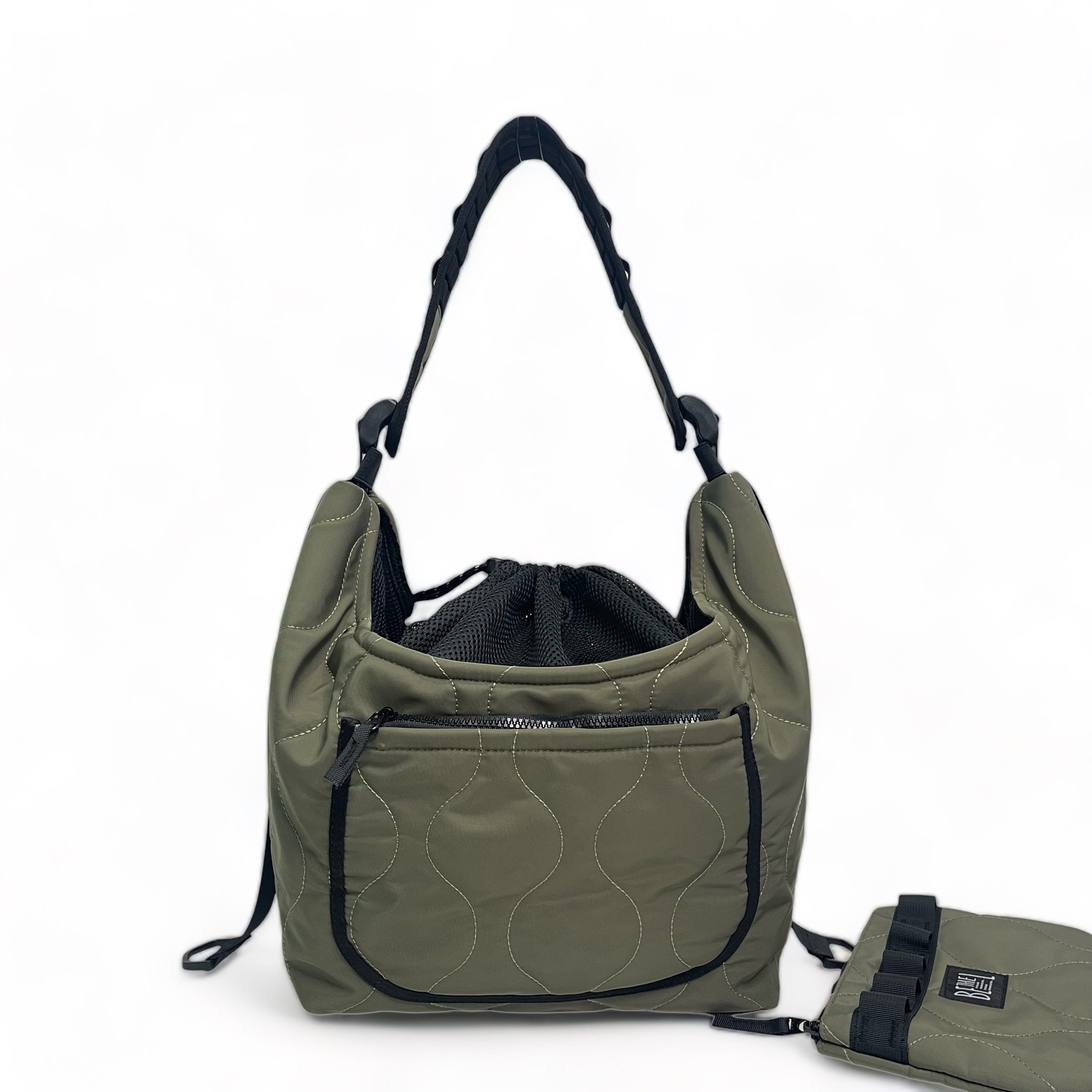 2用寵物袋組合(單肩袋/斜掛袋 )以輕機能 和 混合軍事風打棗工藝為設計元素,打造出一個集時尚並實用的一個寵物2用袋組合。