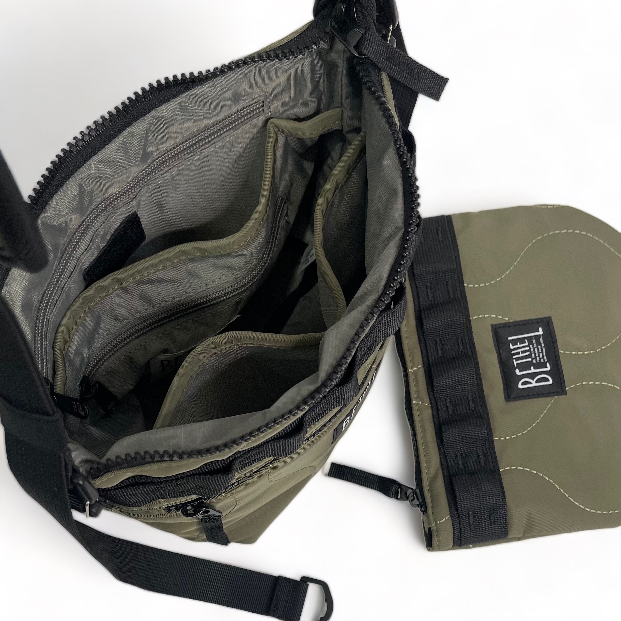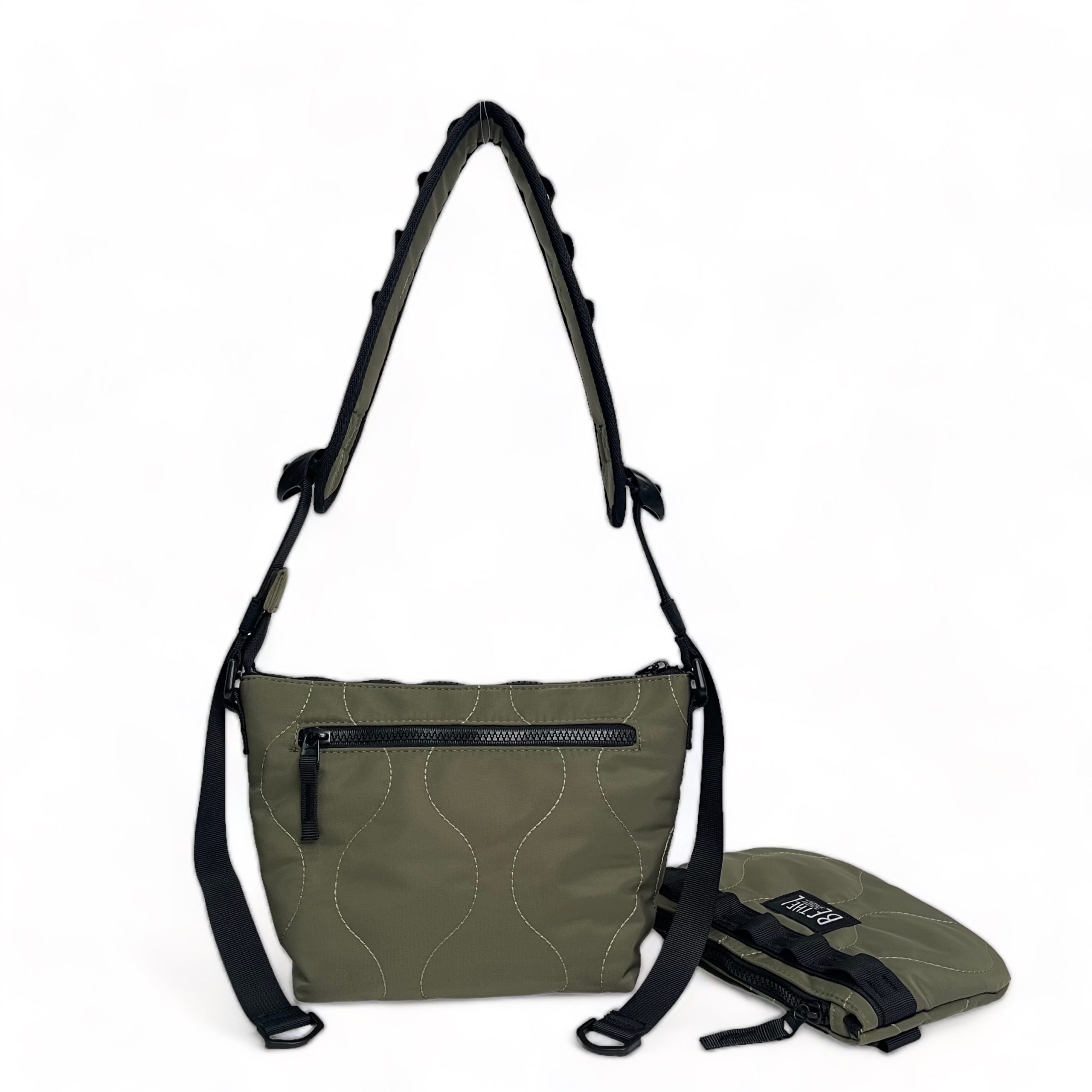 2用袋組合(單肩袋/ 斜掛袋 )以輕機能 和 混合軍事風打棗工藝為設計元素,打造出一個集時尚並實用多變的兩用袋組合。