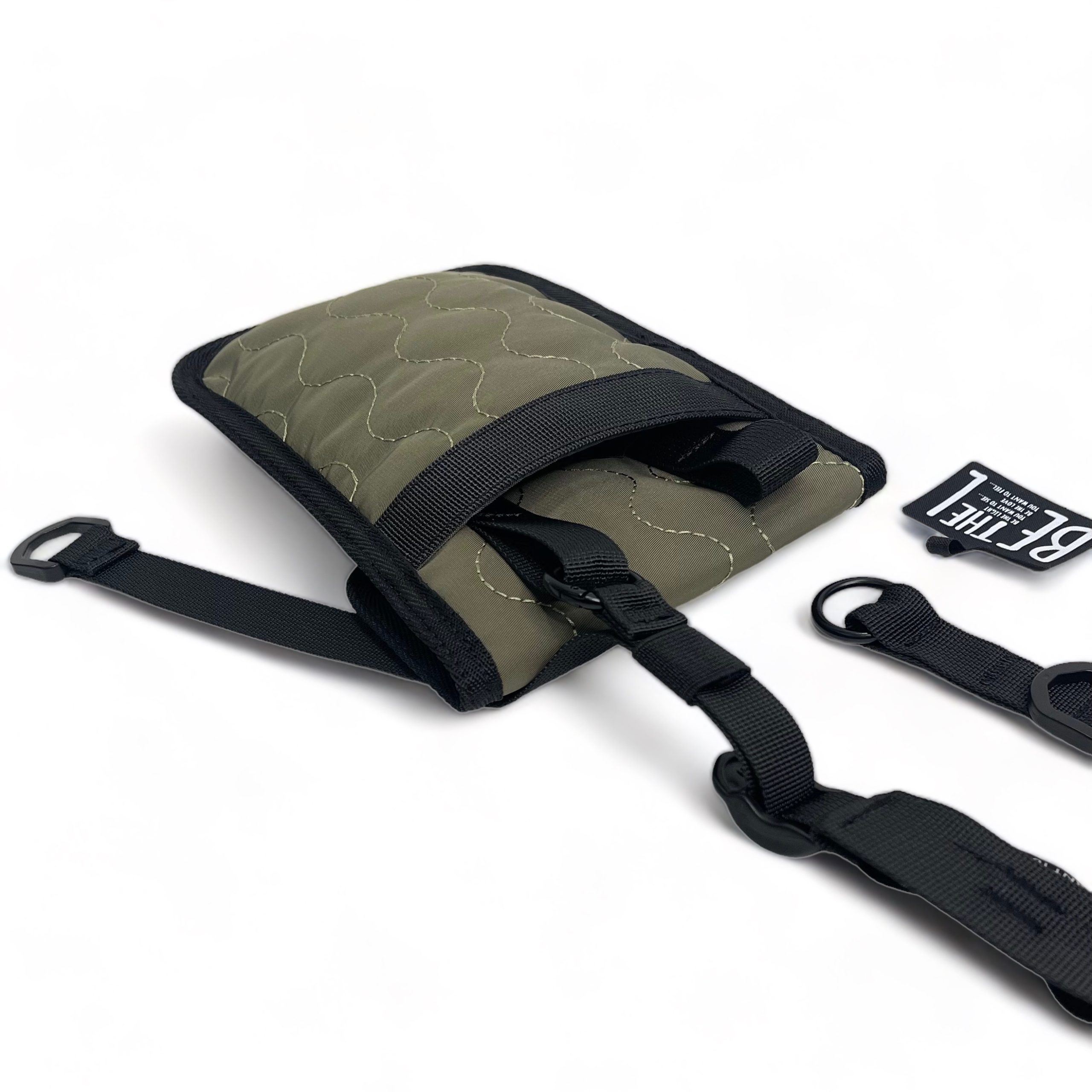 實用斜掛袋(斜掛袋/ 腰袋)以輕機能 和 混合軍事風打棗工藝為設計元素,打造出一個集時尚並實用多變的2用袋組合。
