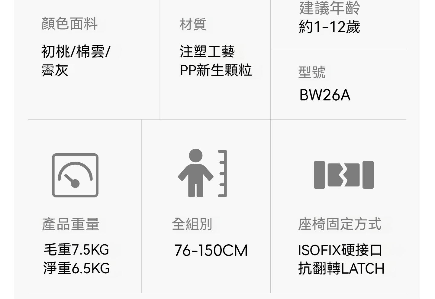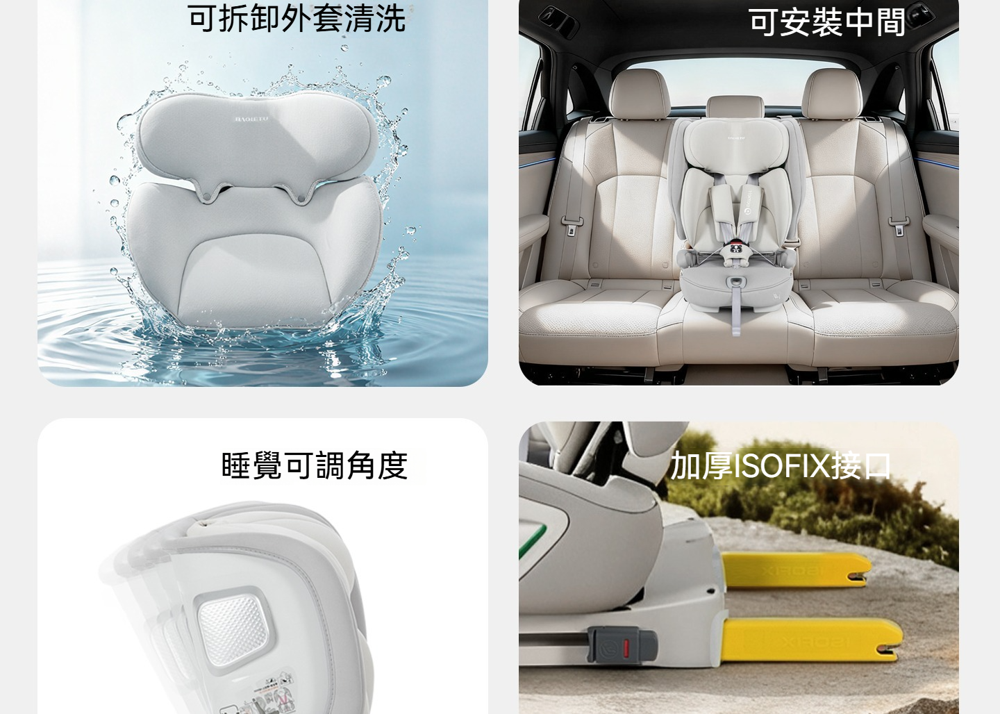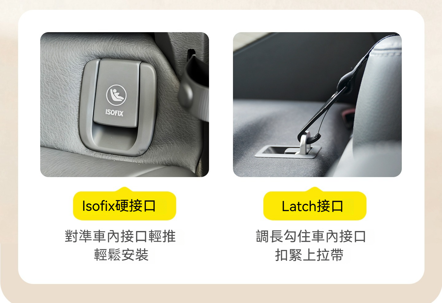 座椅固定方式:ISOFIX硬接口抗翻轉LATCH