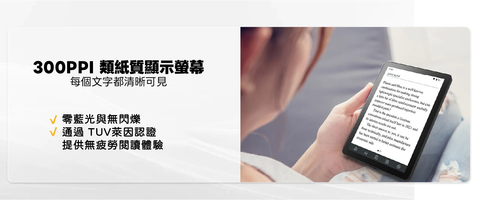 機身厚度僅 6.98mm,比你的手機還要輕!輕鬆放進通勤的包包或口袋。連續閱讀數小時也不會覺得笨重——因為故事應該輕裝前行,而不是成為你的負擔!