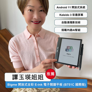 “彩色E-ink電子閱讀平板Bigme B751C國際版,是採用彩色E-ink電紙墨水螢幕的閱讀器,搭載Android 11,內建Google Play商店,可下載常用的電子書和漫畫閱讀App。 內建AI助手,智能生成文稿與圖片,會議記錄智能總結重點,語音轉文字支援37種語言翻譯。 套裝附電容筆及機套,支援手寫、畫圖及筆記等功能。”資料來源:GadgetGang HK