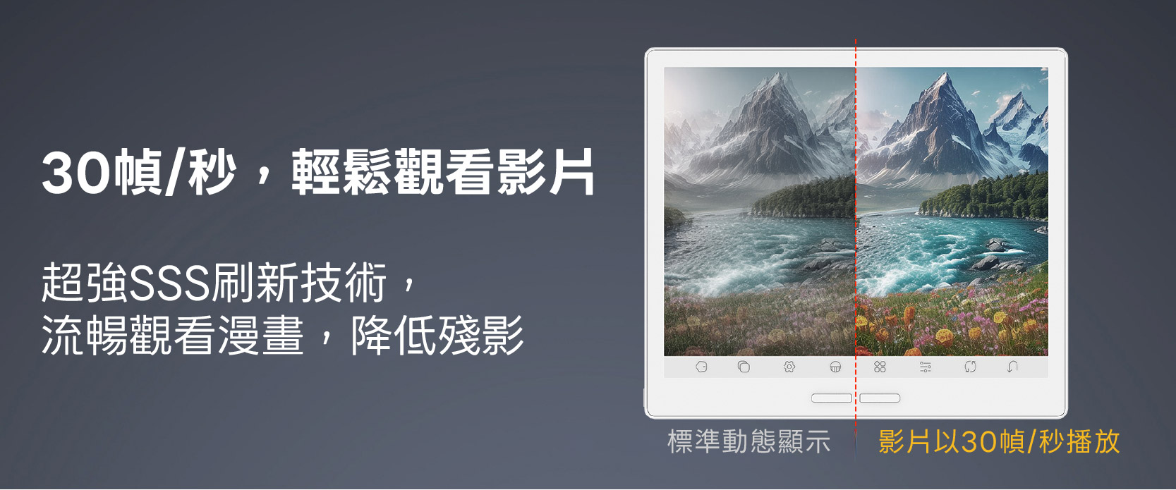 具備流暢的每秒 30 幀更新率和先進的防拖影技術,導航選單、瀏覽網頁和滾動文件都格外流暢靈敏。