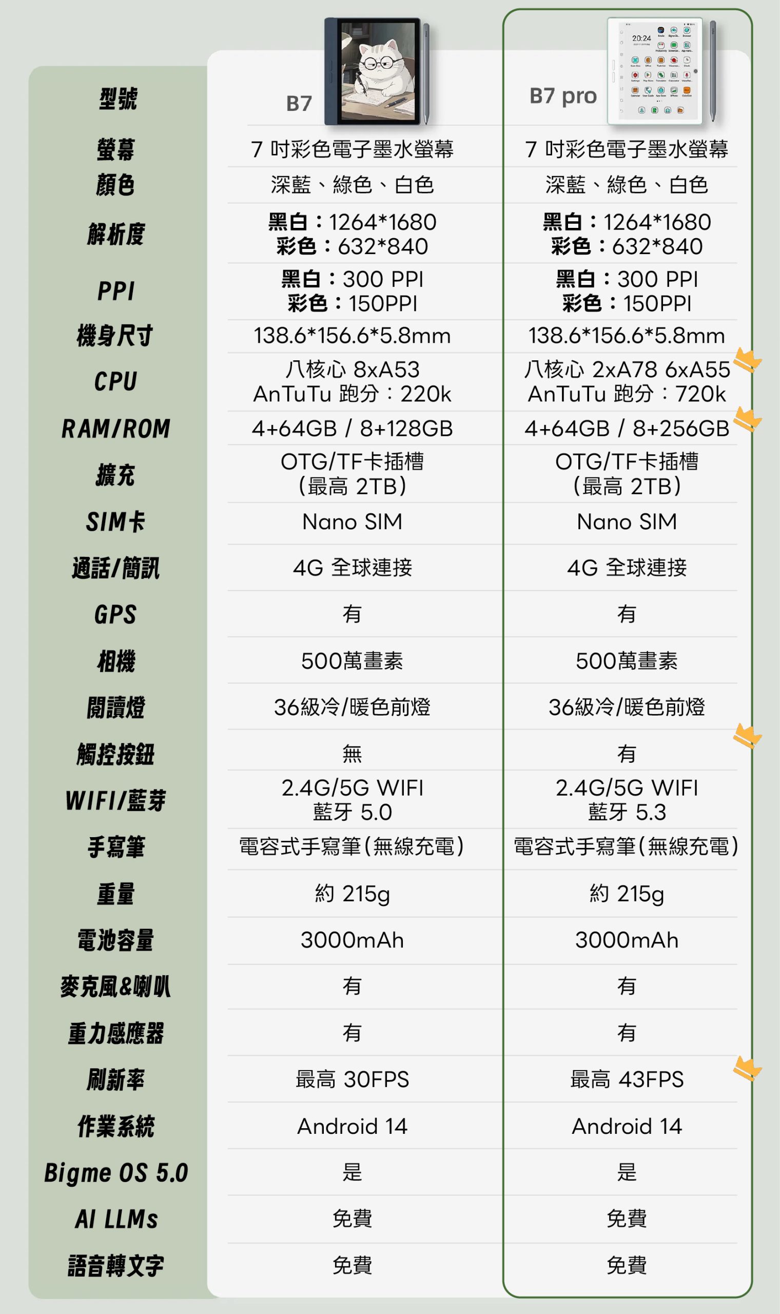 Bigme B7 Pro 國際版 以 7吋彩色電子墨水顯示器重新定義攜帶式電子閱讀器的體驗,將護眼科技與生動視覺完美融合。專為專業人士、學生和數位閱讀者設計,更結合 4G連網功能、觸控筆和 AI 技術效能;快刷及清除殘影技術,休閒時拿來觀看影片也是順暢不卡頓!無論是編輯文件、瀏覽網頁或享受電子書閱讀,B7 都能提供流暢體驗!