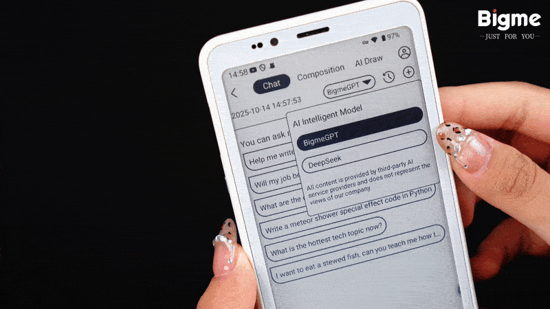 Bigme 內建 BigmeGPT4.0,搭載AI 智能技術,讓你的生活變得更加智能方便: