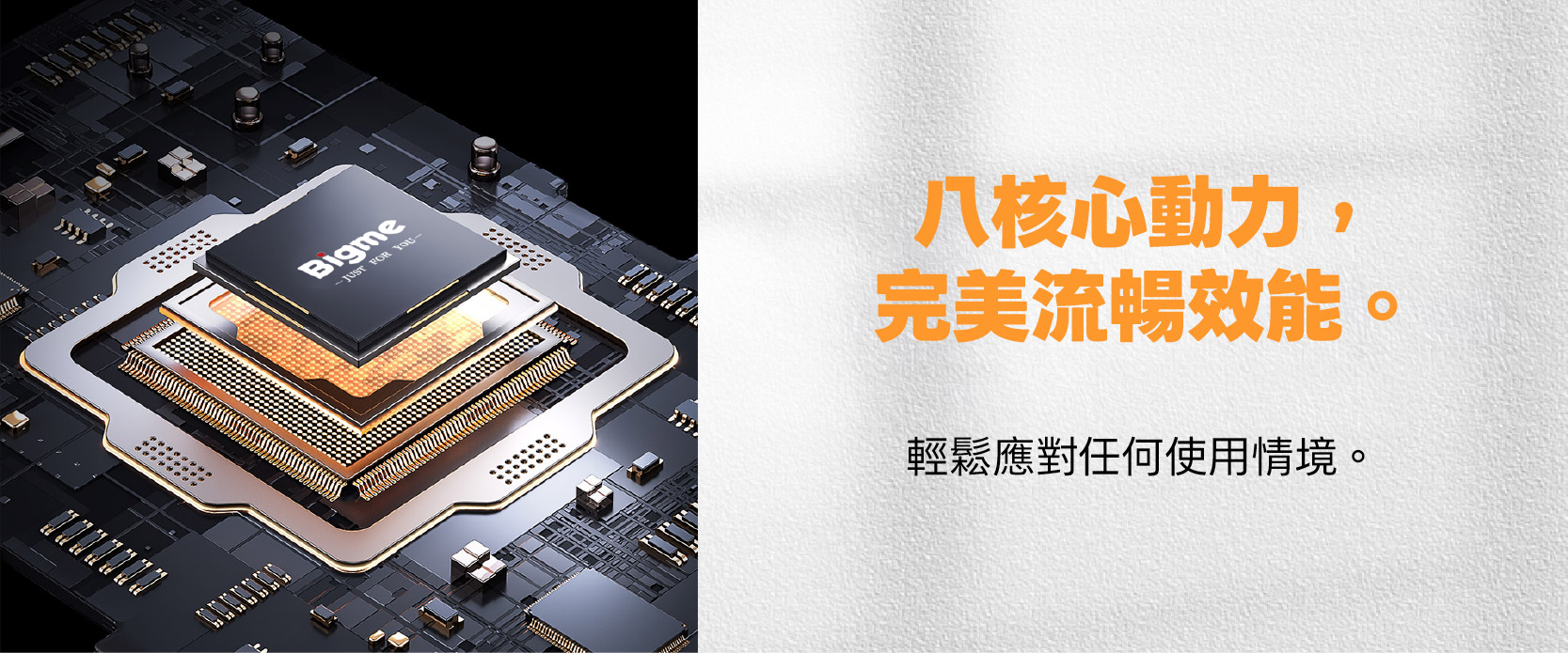Bigme HiBreak S 專為流暢效率而設計,配備八核心 CPU,提供強大的處理能力以實現靈敏的多工處理。配備 6GB RAM 和 128GB 內建儲存空間,確保應用程式快速啟動,並為您的檔案和應用程式提供充足空間。