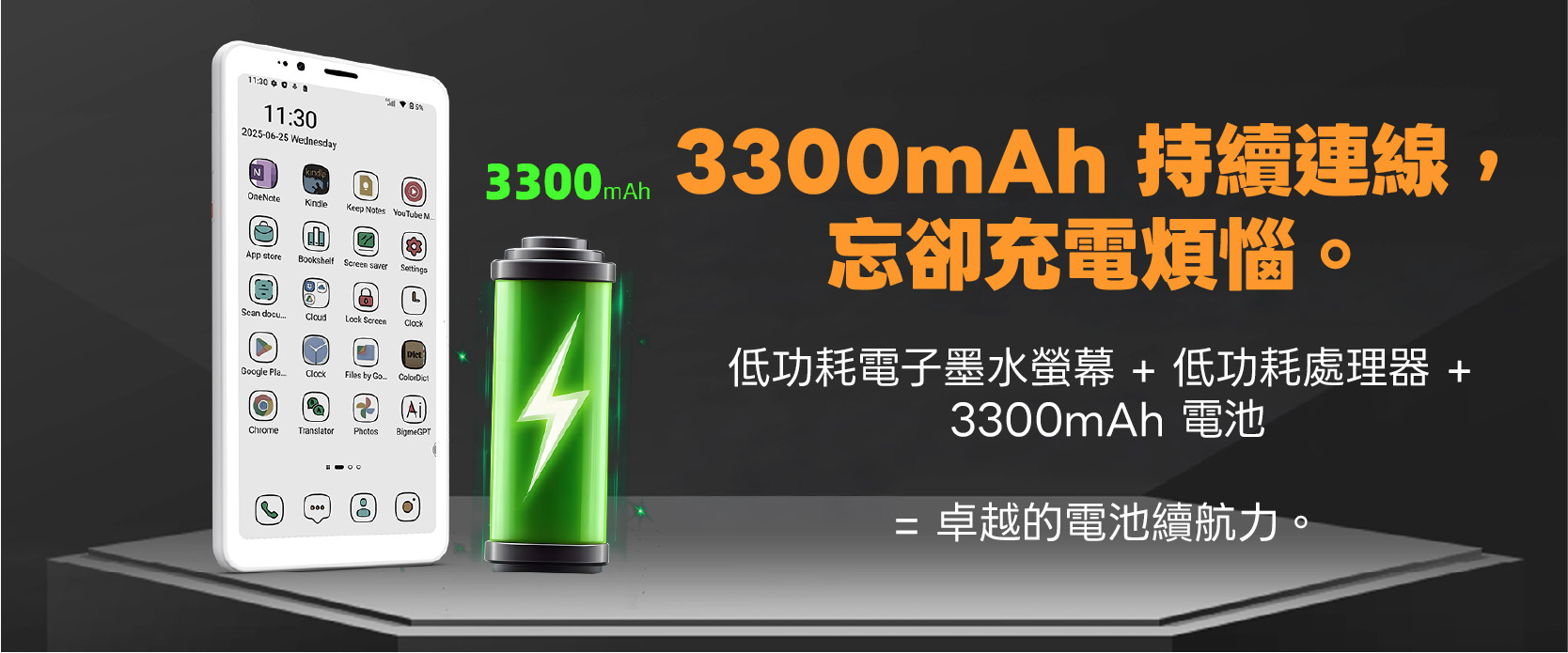Bigme HiBreak S 配備 3,300mAh 電池,結合節能的 5.84 吋電子紙螢幕,確保持久的效能表現。這種顯示螢幕以超低功耗而聞名,因為只有在內容更新時才會消耗大量電力,使裝置能夠維持相當長時間的電量!