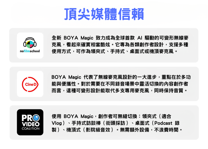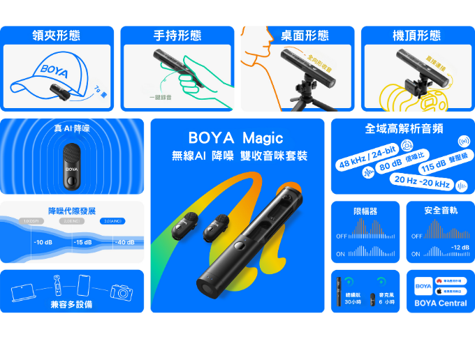 不用擔心,BOYA Magic 為你解決! 一機多用,隨時切換,創作更自由。