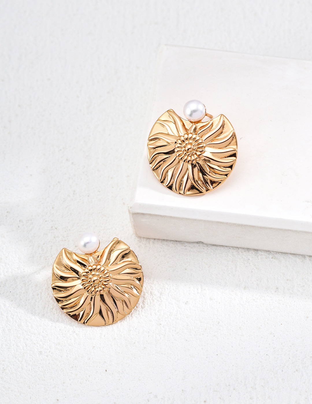 璀璨如陽,溫暖如初,這款耳環以復古金色設計,宛如初升的太陽,散發著迷人的光芒。每一片花瓣皆由匠人精心雕琢,細緻的層次感使其猶如大自然的杰作,令人一見傾心。