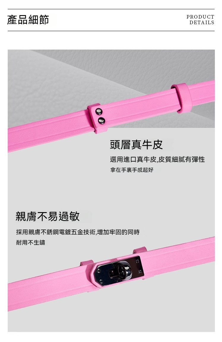 采用親膚不銹鋼電鍍五金技術,增加牢固的同時耐用不生銹
