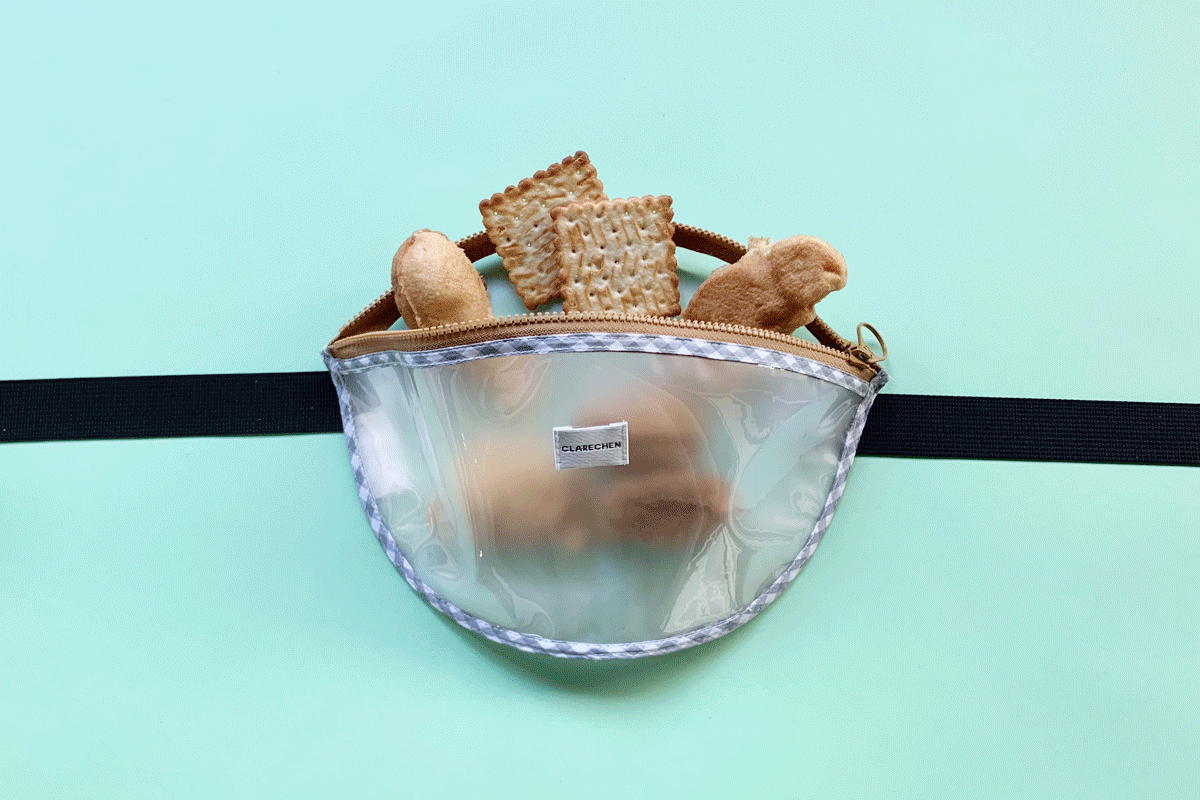 ▲ 用碗的形狀來作為腰包剪裁,有著能承裝食物的功能,簡約設計 less is more 讓孩子吃點心零負擔