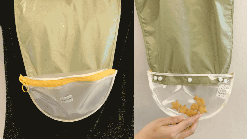 ▲ 腰包背後有著內層袋設計,吃點心時,掉下的屑屑通通可接到,不再掉滿地