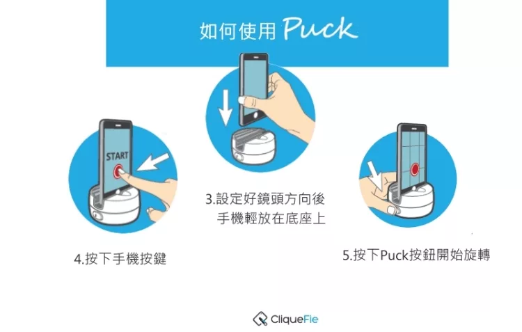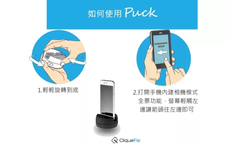 CliqueFie Puck 是一款 360度的全景旋轉拍攝台