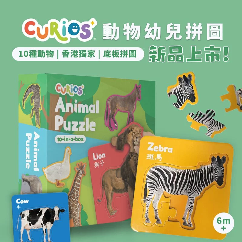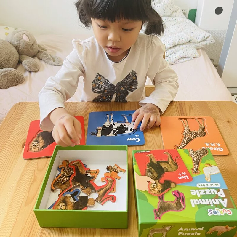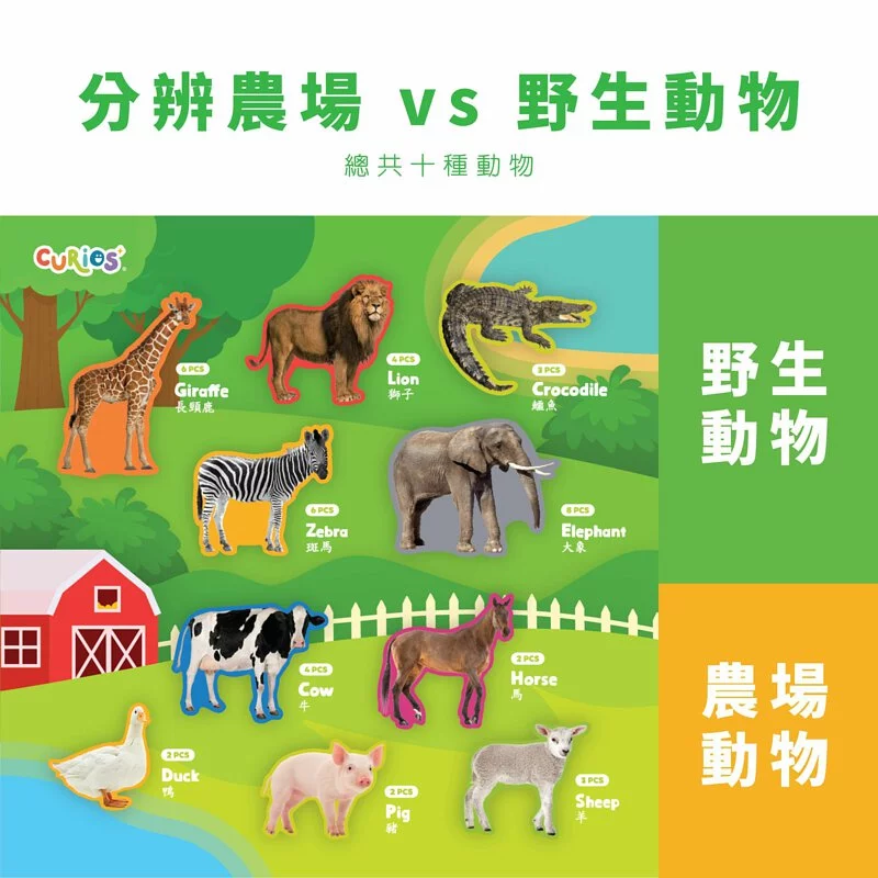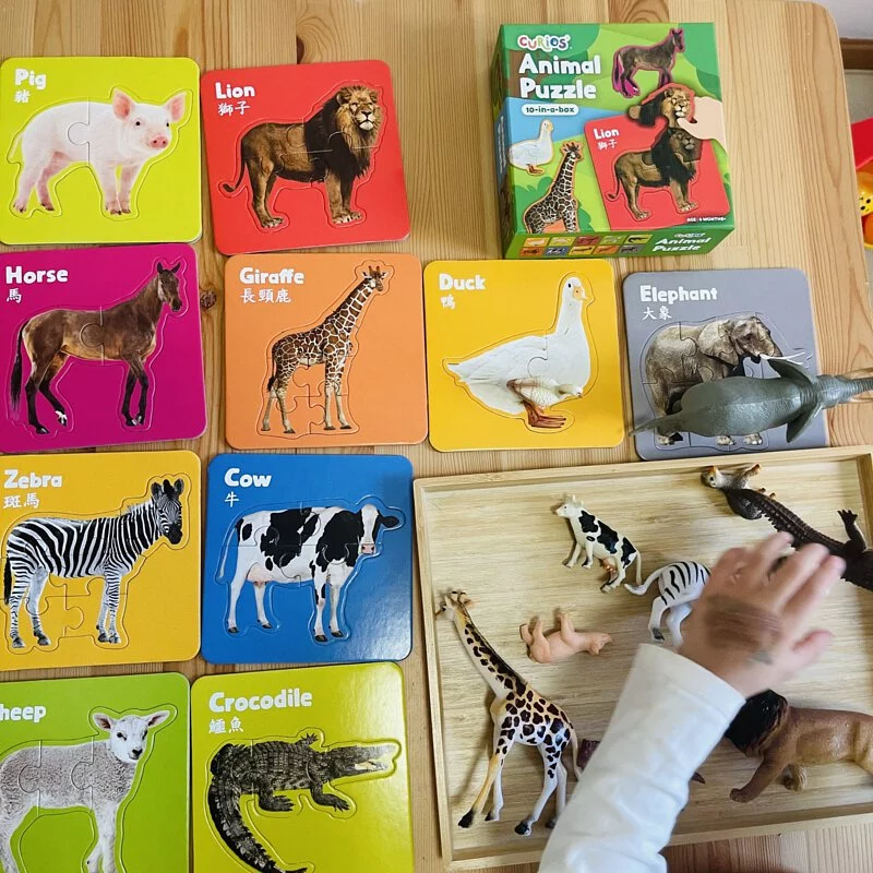 CuriosⓇ 動物幼兒拼圖一盒拼圖有🔟種動物,一次過學曬野生同埋農場動物🦒🐄!每一種拼圖既切割片數塊唔同🧩,由2️⃣塊到8️⃣塊,難度循序漸進,陪伴住BB從0歲學習到3歲📈!