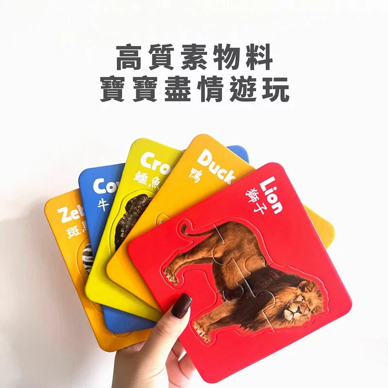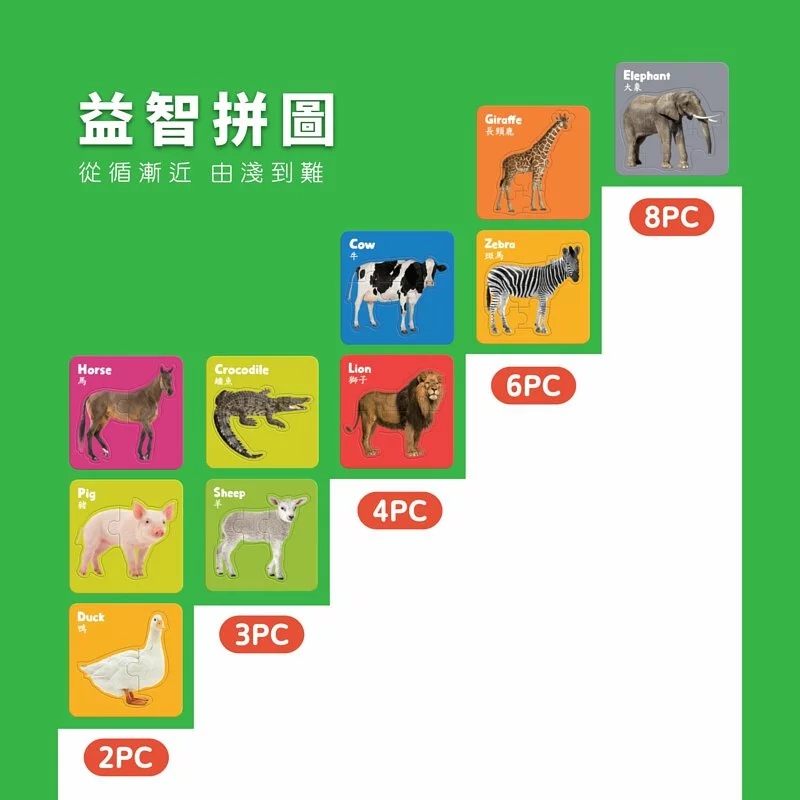 🧩 一套10種動物拼圖,從2片至8片循序漸進