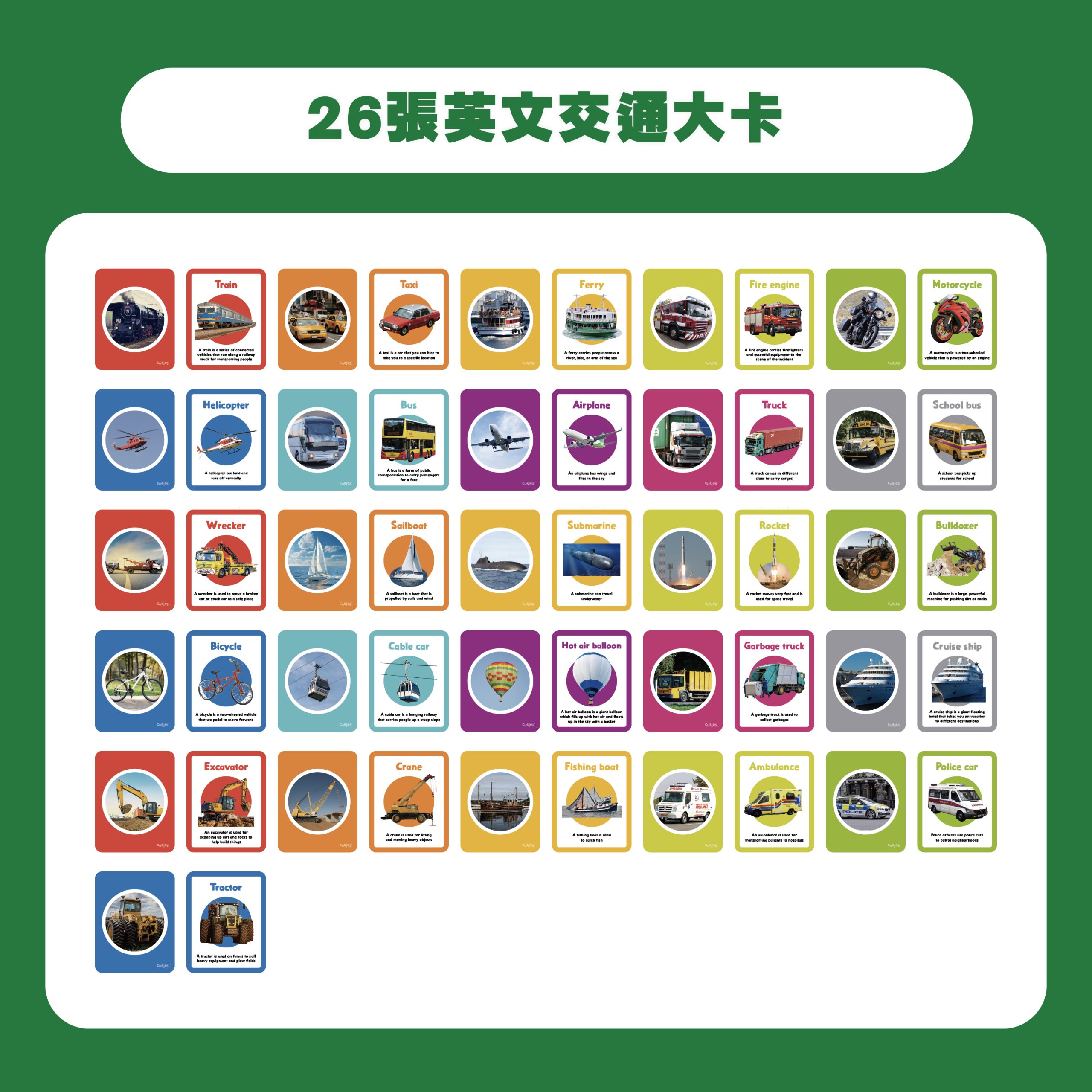 ✅ 26張英文雙面flashcard,正面係英文名稱+交通實物圖,背面係交通實物圖