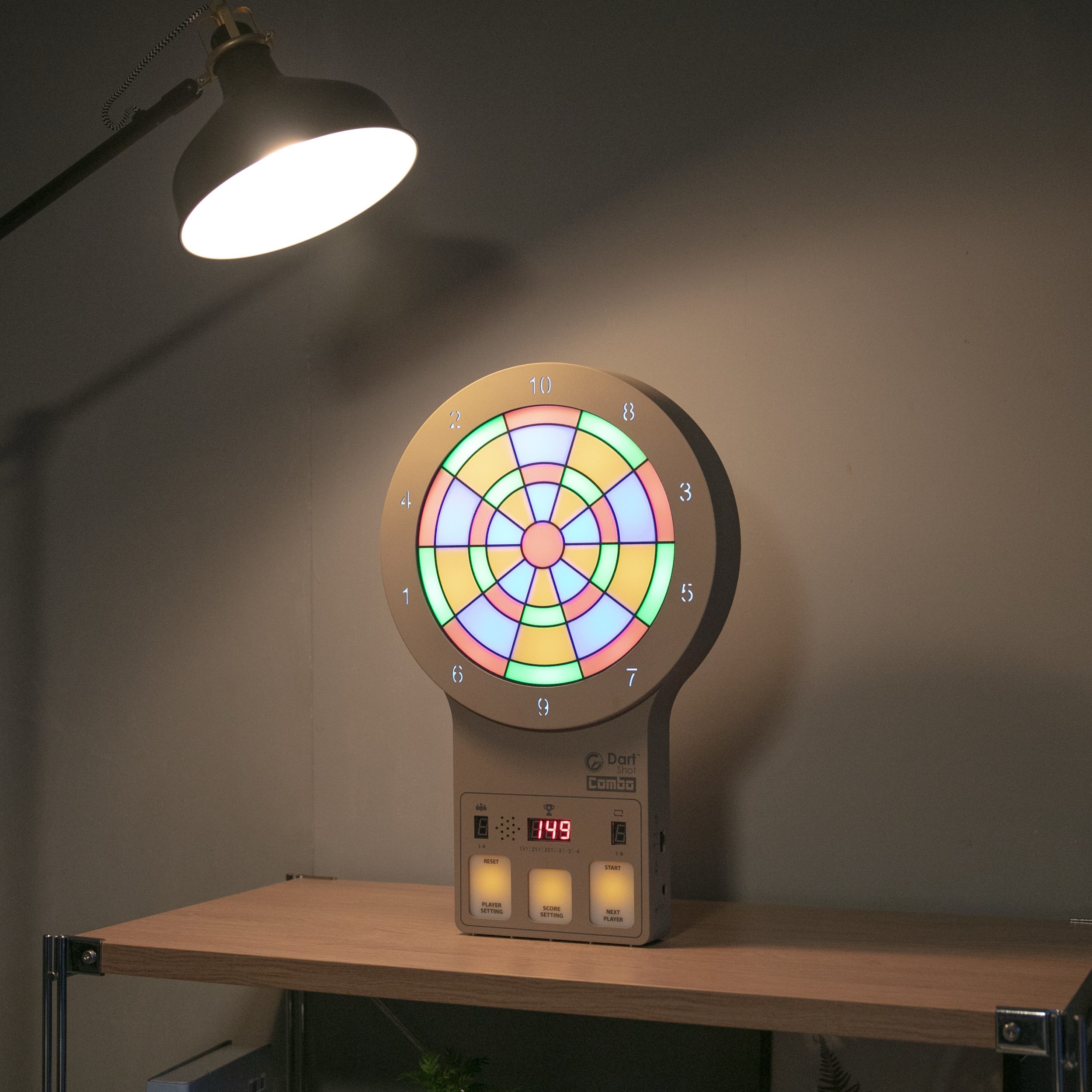 DartShot Combo 不只是一般的電子靶,還加入了飛鏢運動元素與規則,將約30×30公分的圓形靶面切割成41個得分區域,再搭配類似飛鏢 01 GAME 模式的規則,將深度考驗你的專注度、手眼協調能力,帶給你一場全新的心智鍛鍊!