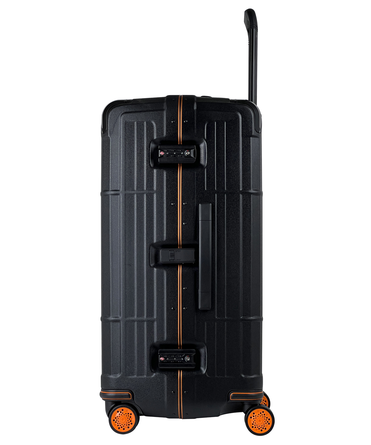 Departure the Boost系列的鋁框行李箱配備後輪煞車功能,確保行李的穩定性,防止不必要的滑動。外殼100%使用德國拜耳(Bayer) PC材質,提供卓越的耐衝擊性能。美國海關認證的TSA密碼鎖則為您的物品提供最高安全保障。這款行李箱搭載360度高彈性PU靜音輪,帶來流暢的移動體驗。此外,三段式符合人體工學的鋁合金拉桿使操作更加順暢和舒適,提把則採用耐用的海翠爾材質,增強韌性。內部的對開鋁框設計完美無瑕,使這款行李箱成為您旅行的最佳夥伴!