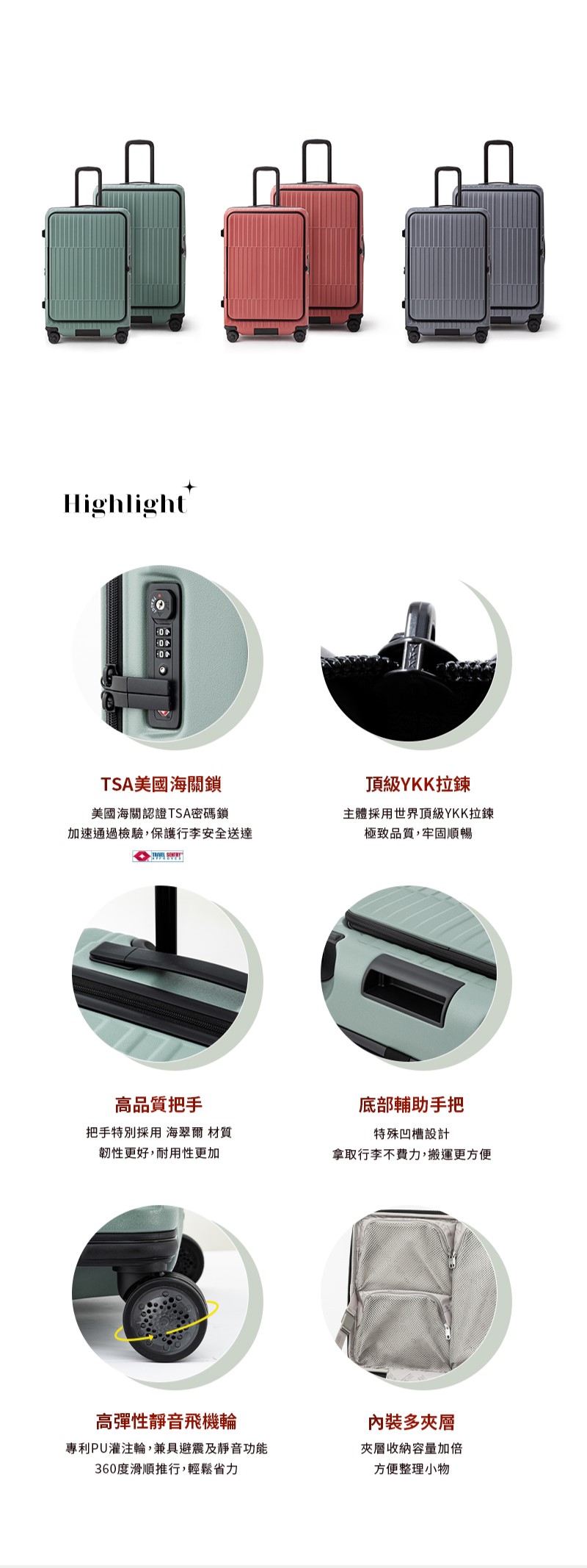 🔒 安全鎖具:配備美國海關認證的TSA密碼鎖,為您的行李提供最高安全保障。