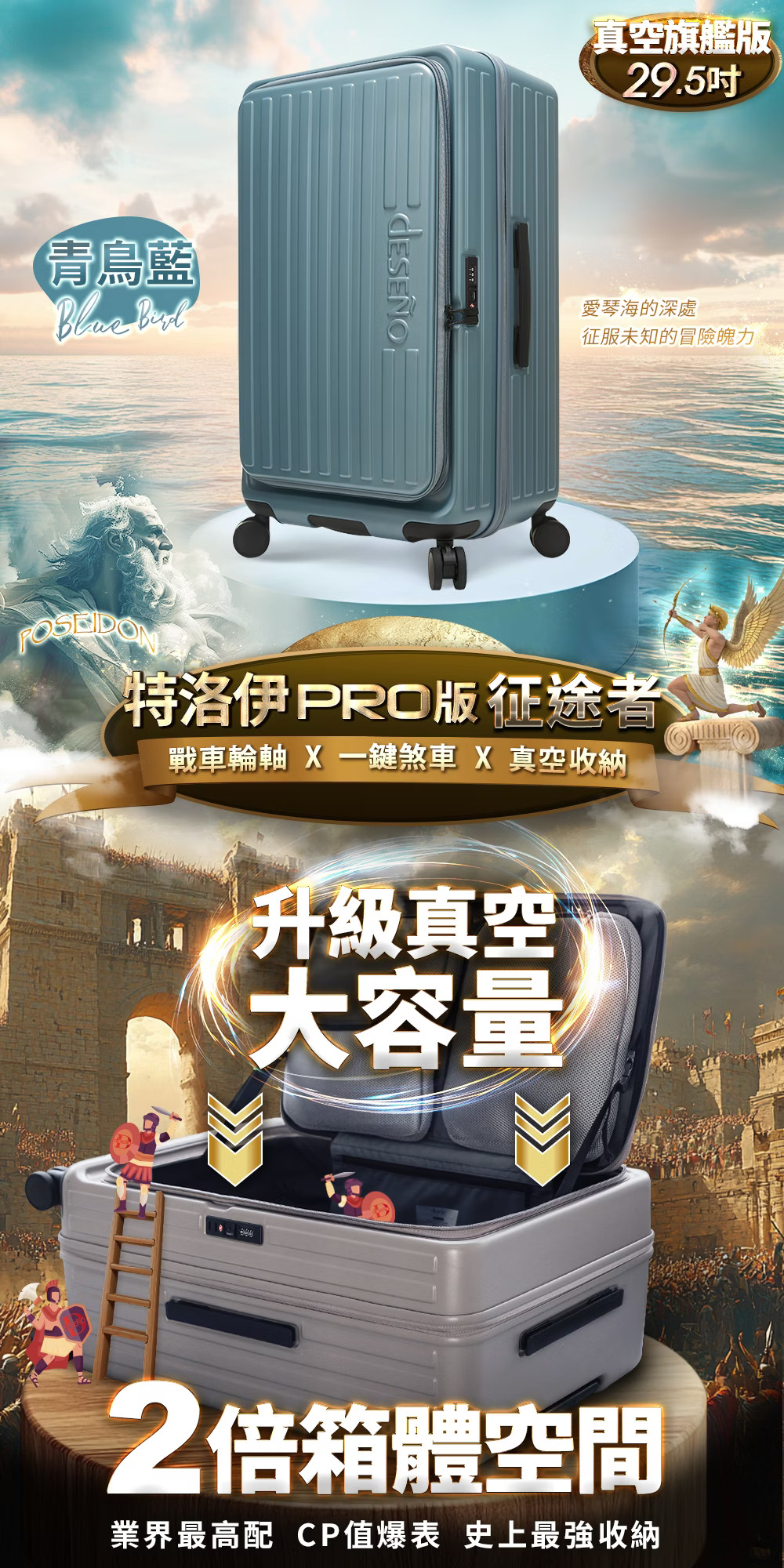 Deseno PRO 前開式抽真空一鍵壓縮行李箱 (品牌直送)