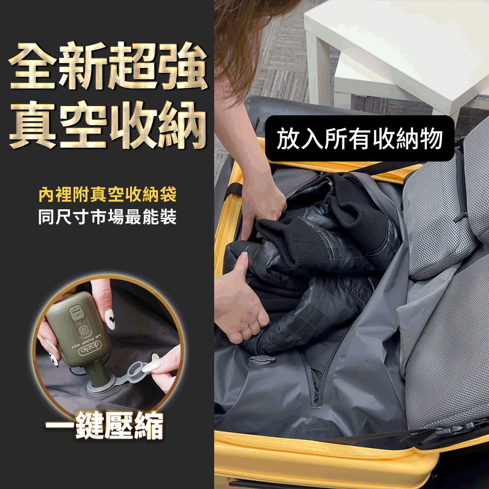 Deseno PRO 前開式抽真空一鍵壓縮行李箱