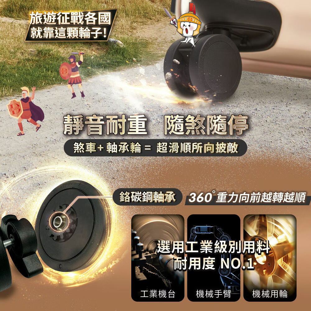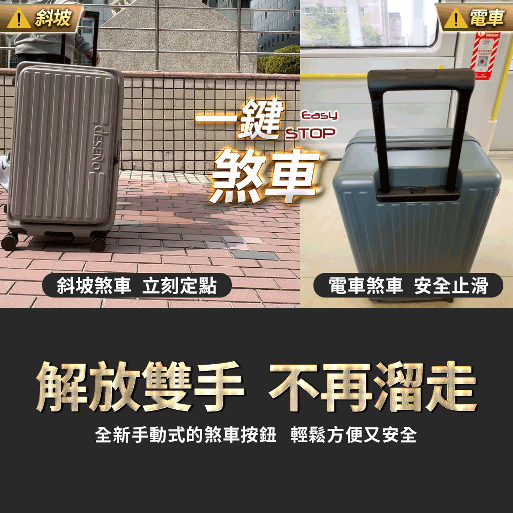 🔧 便捷煞車設計:煞車裝置位於拉桿底部,輕鬆操控,讓使用更輕鬆。