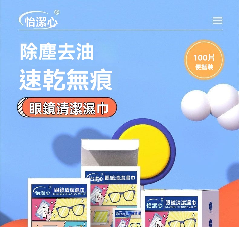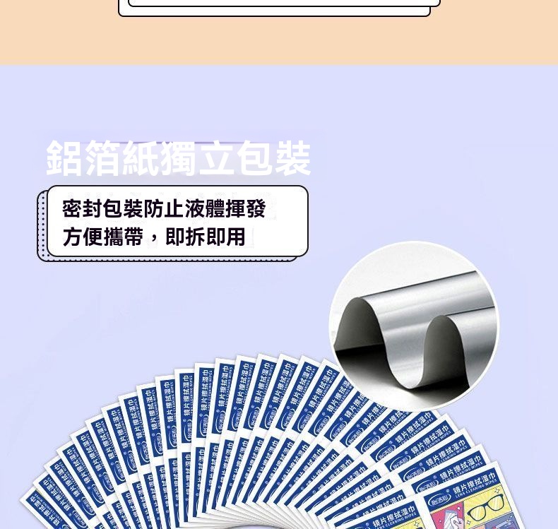 【一次性擦拭紙眼鏡清潔濕紙巾】