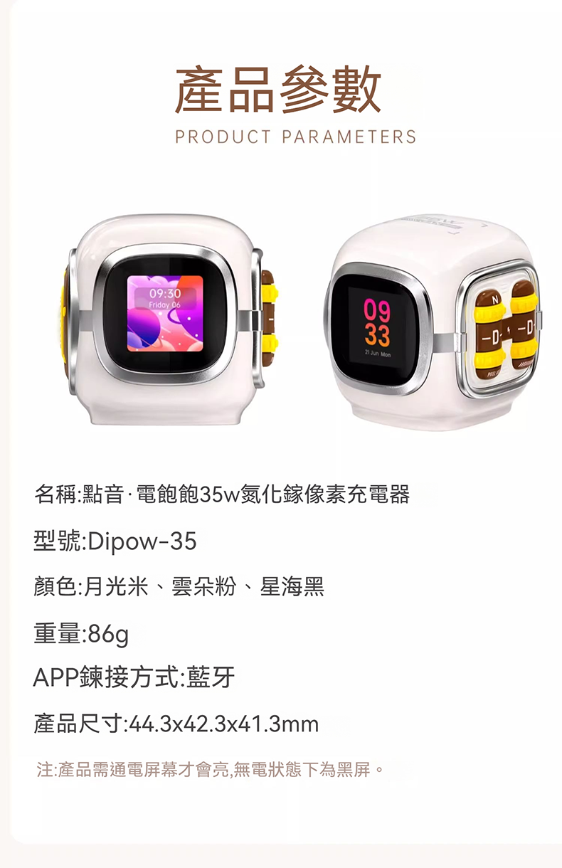 名稱:點音·電飽飽35w氮化鎵像素充電器