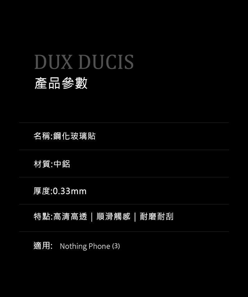 搶先留言 “DUX DUCIS Nothing Phone (3) 5G 滿版鋼化玻璃貼 手機螢幕貼 (品牌直送)”