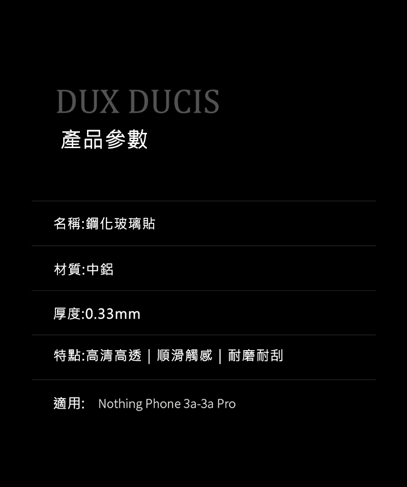 搶先留言 “DUX DUCIS Nothing Phone (3a) / Phone (3a) Pro 滿版鋼化玻璃貼 玻璃膜 鋼化膜 手機螢幕貼 保護貼 (品牌直送)”