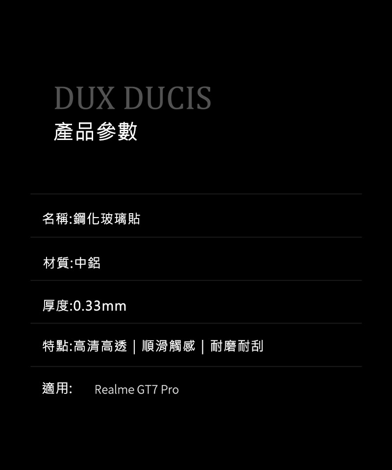 搶先留言 “DUX DUCIS Realme GT7 Pro 5G 滿版鋼化玻璃貼 手機螢幕貼 (品牌直送)”