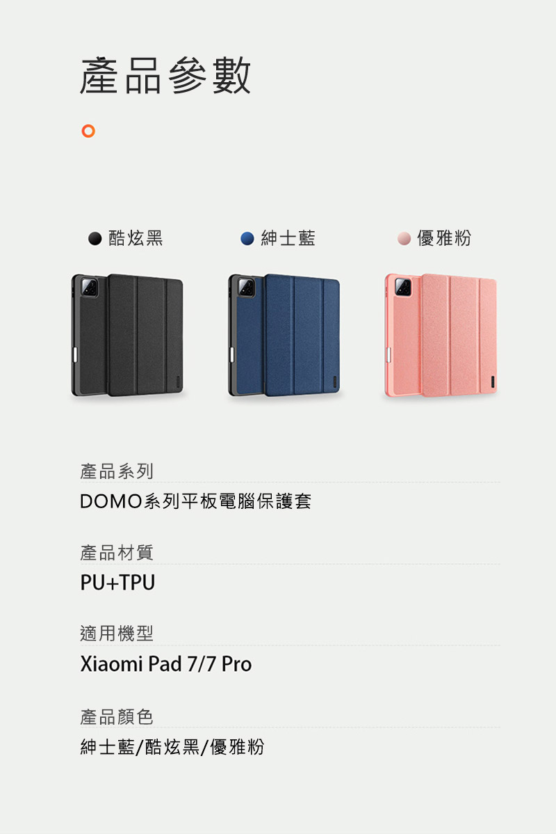 搶先留言 “DUX DUCIS Xiaomi 小米 Pad 7 / 7 Pro DOMO 筆槽防摔皮套 平板皮套 翻蓋皮套 側翻皮套 支援休眠喚醒 (品牌直送)”