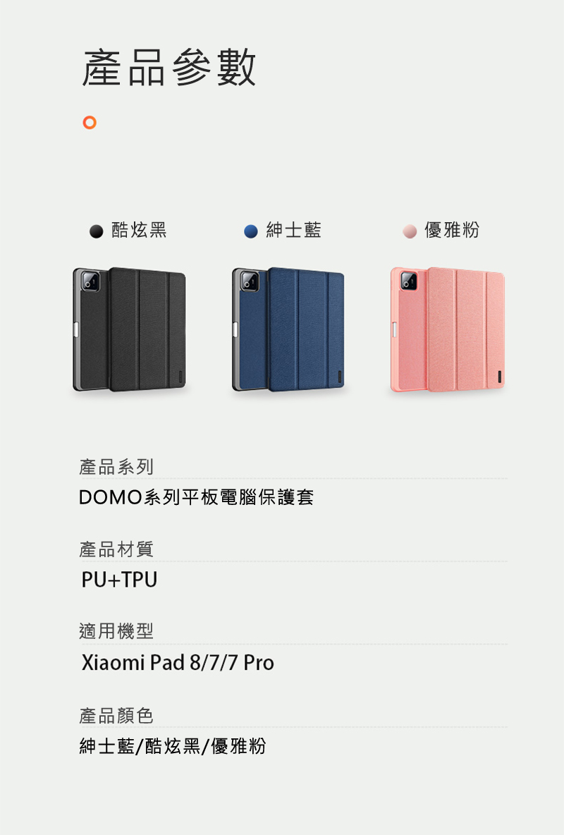搶先留言 “DUX DUCIS Xiaomi 小米 Pad 7/Pad 7 Pro/Pad 8/Pad 8 Pro DOMO 筆槽防摔皮套 平板皮套 (三色可選) (品牌直送)”