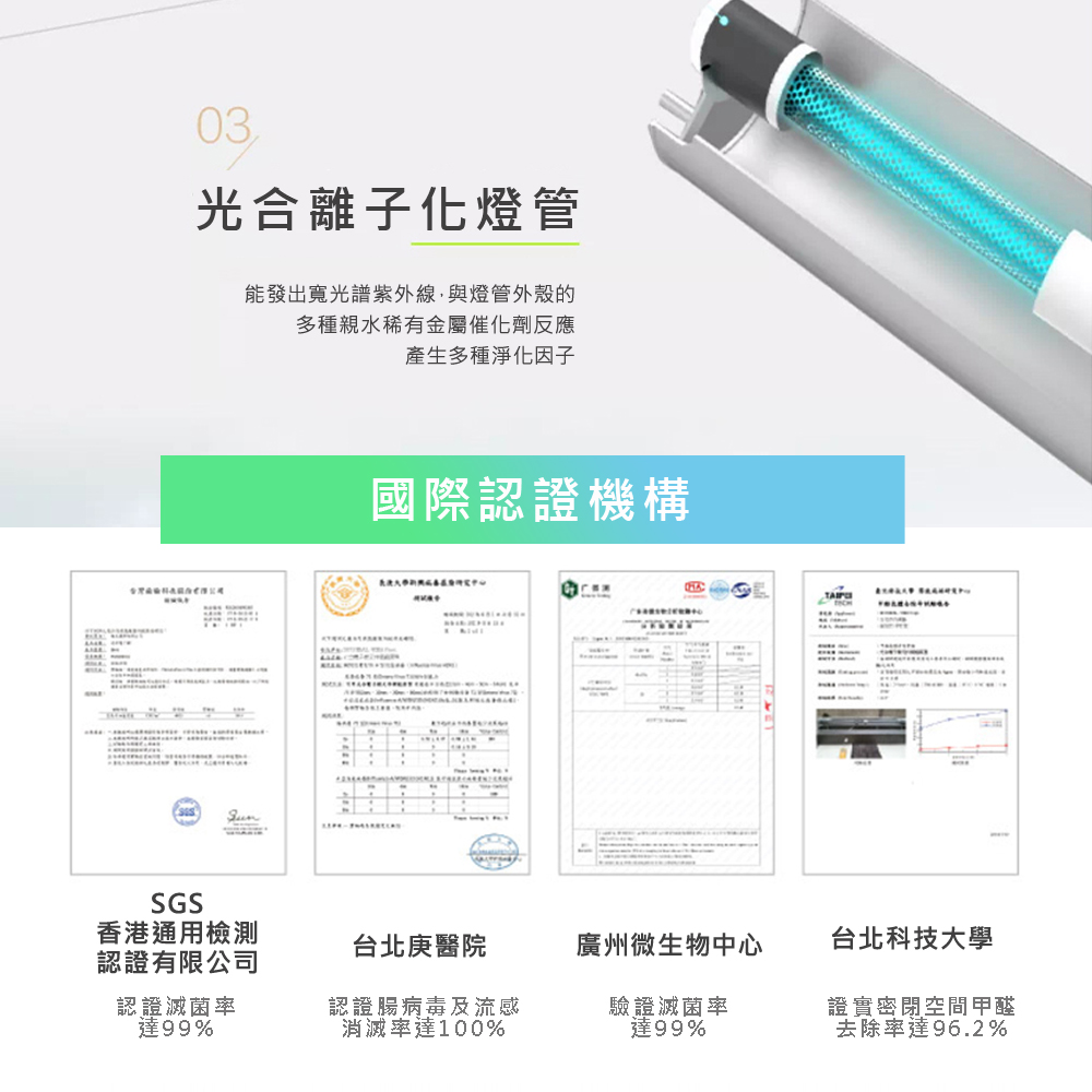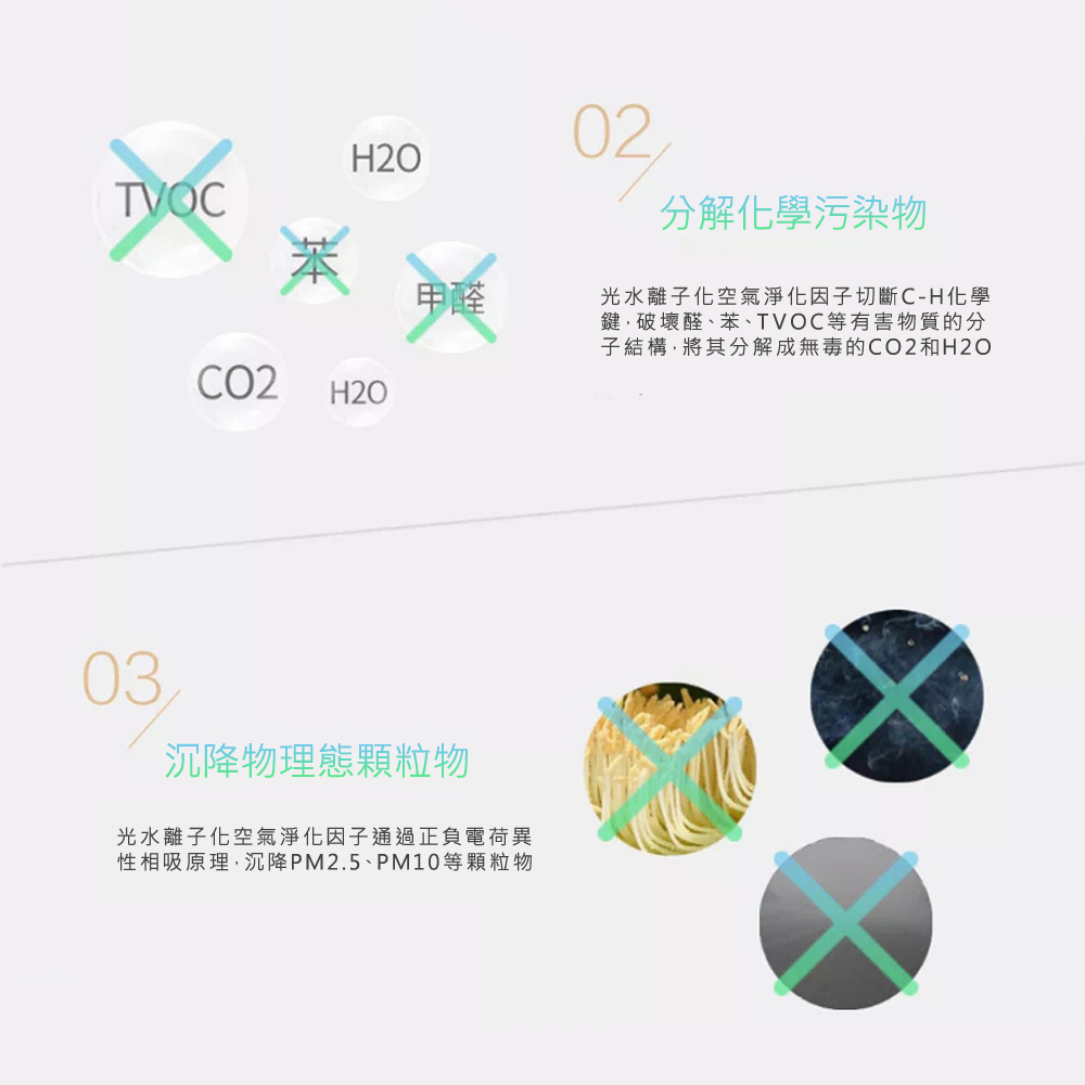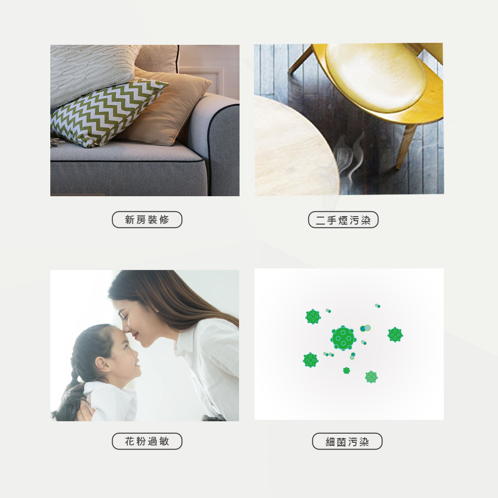 • 抑菌、除臭、去甲醛、淨化空氣三大功能