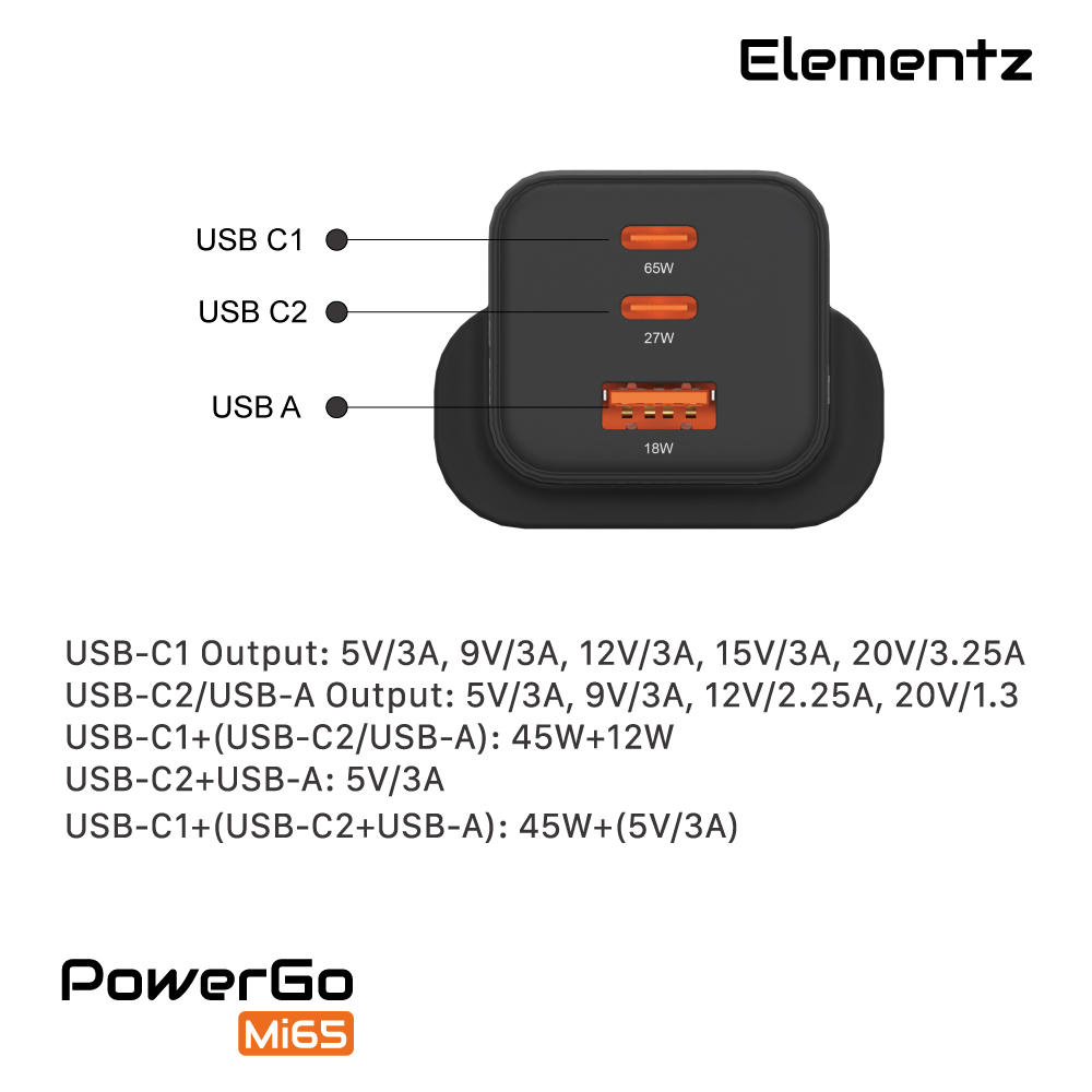 | USB-C1 Output: | 5V/3A, 9V/3A, 12V/3A, 15V/3A, 20V/3.25A (65W Max) |