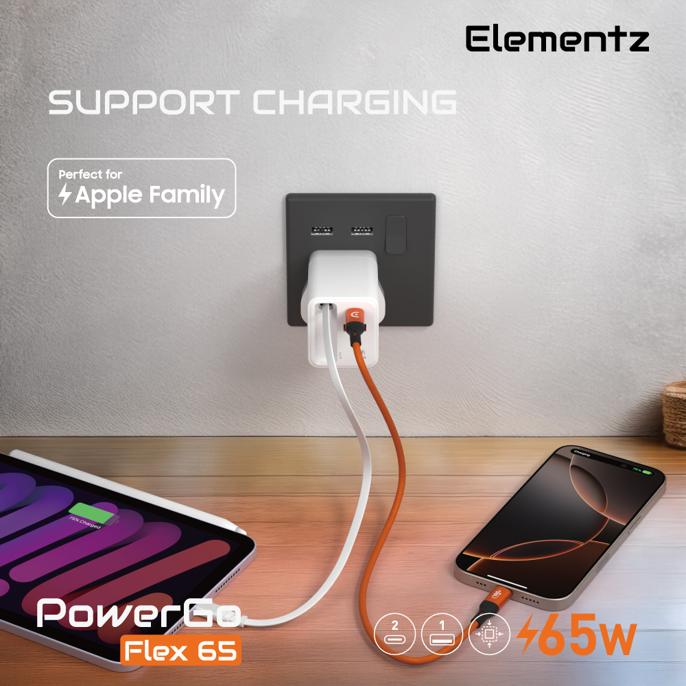 | Cable + USB-C + USB-A | 45W + 10W + 10W |