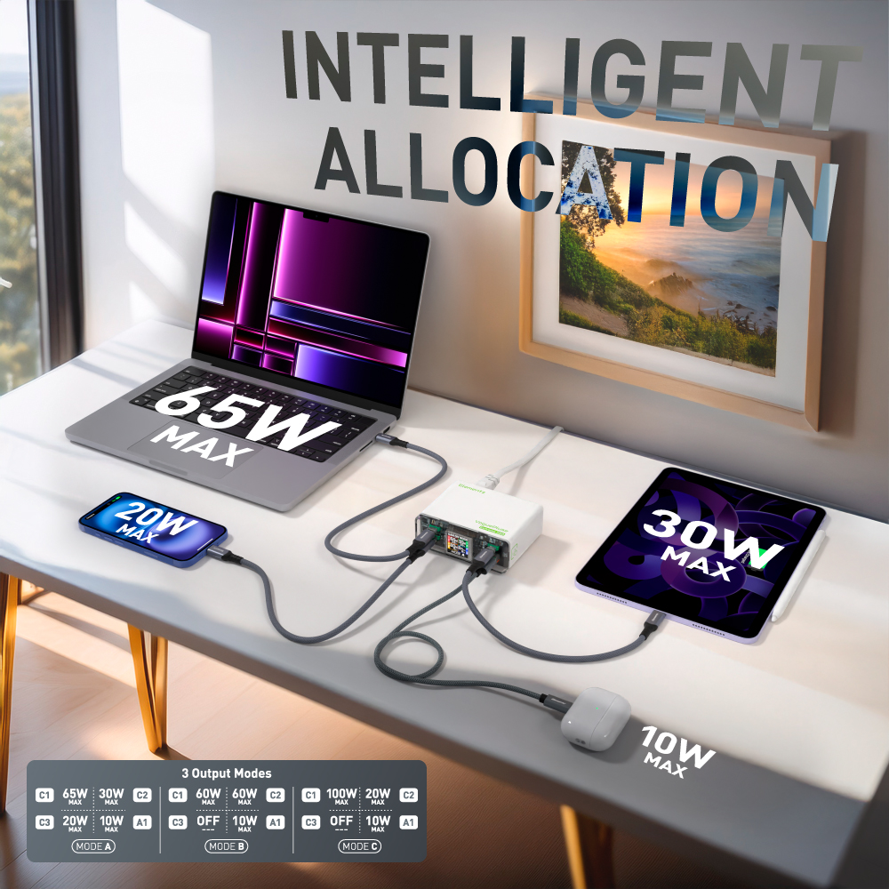 | 三種模式 | MODE A:65W + 30W + 20W + 10W MODE B:60W + 60W + N/AW + 10W MODE C:100W + 20W + N/A + 10W |
