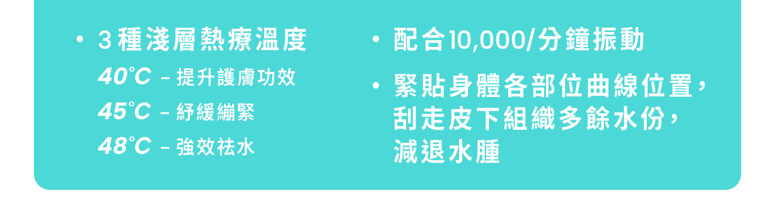 - 5大功能3種淺層熱療溫度,應付各種需求