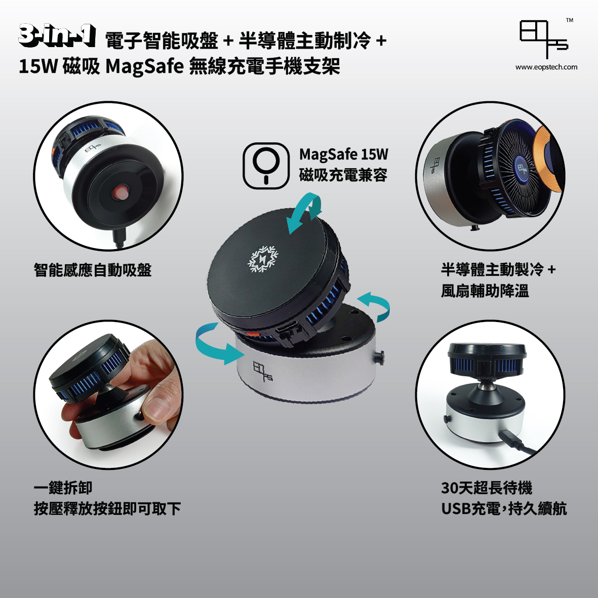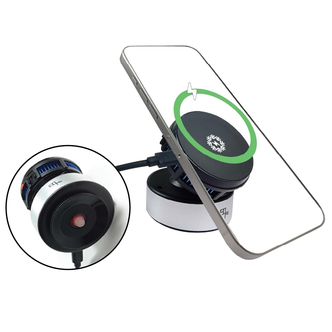 (2) 內置雙重降溫技術,有半導體主動製冷降溫技術,以及風扇散熱,可保持手機於大概10度,進行全速無線充電