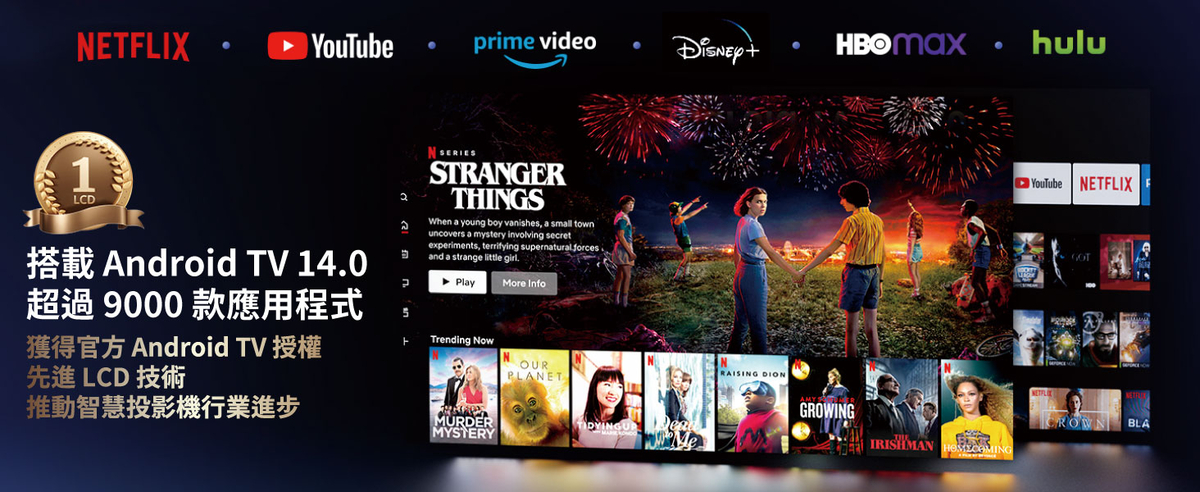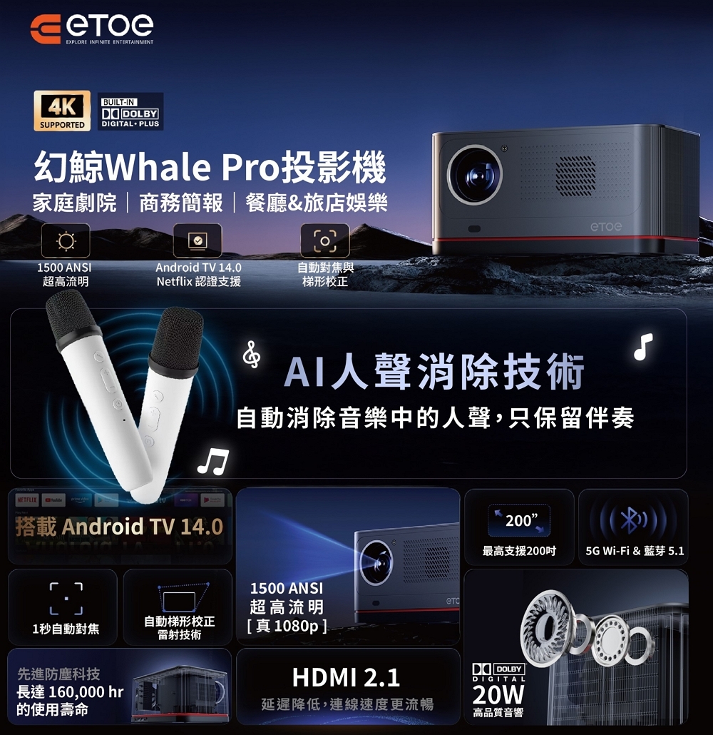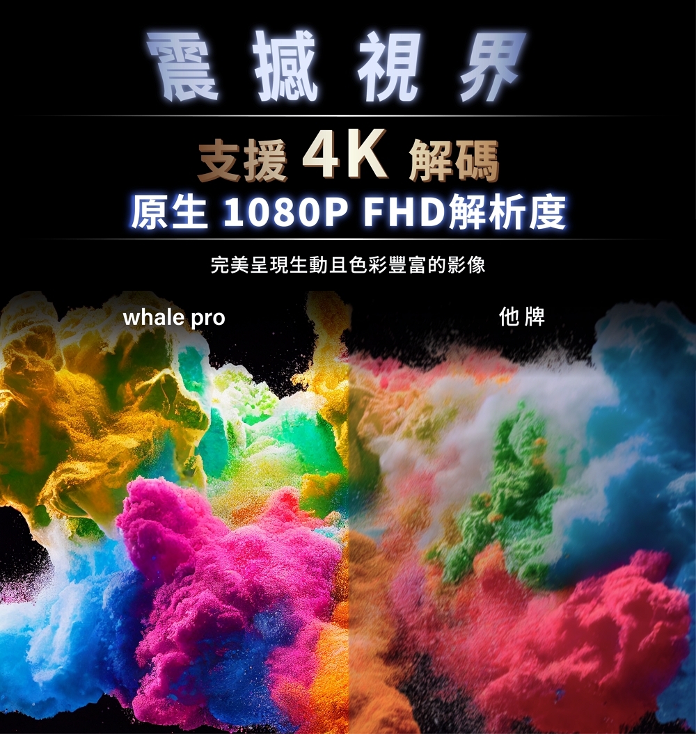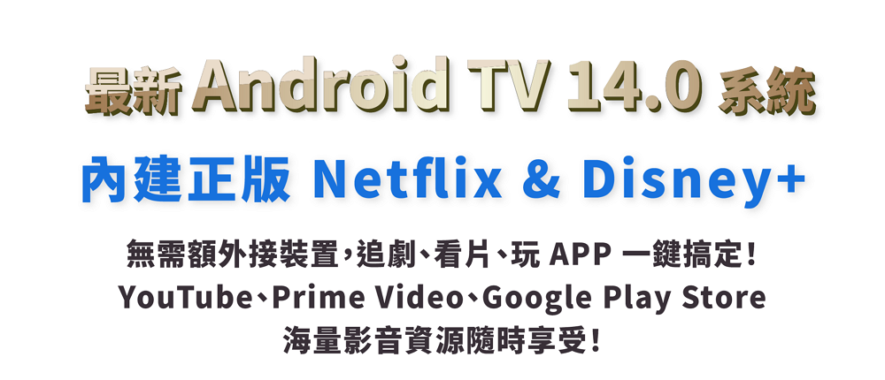 A:Whale Pro 擁有 Android TV, Netflix & YouTube 等等官方授權,為您提供優質的觀影和使用體驗!