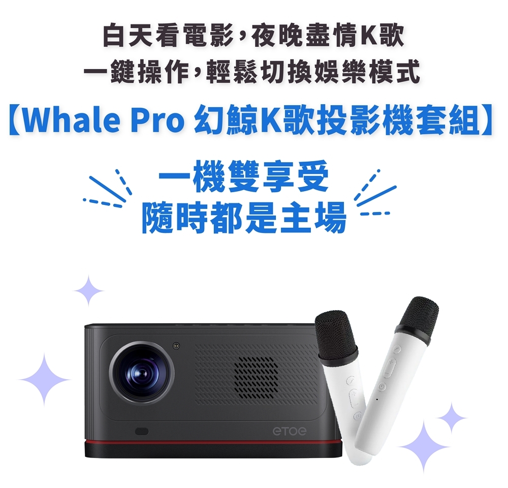A:請將麥克風盒內的 USB 插頭插入 Whale Pro 的 USB 插座,接著開啟遙控器並按下麥克風按鈕,即可調整歌曲背景人聲。