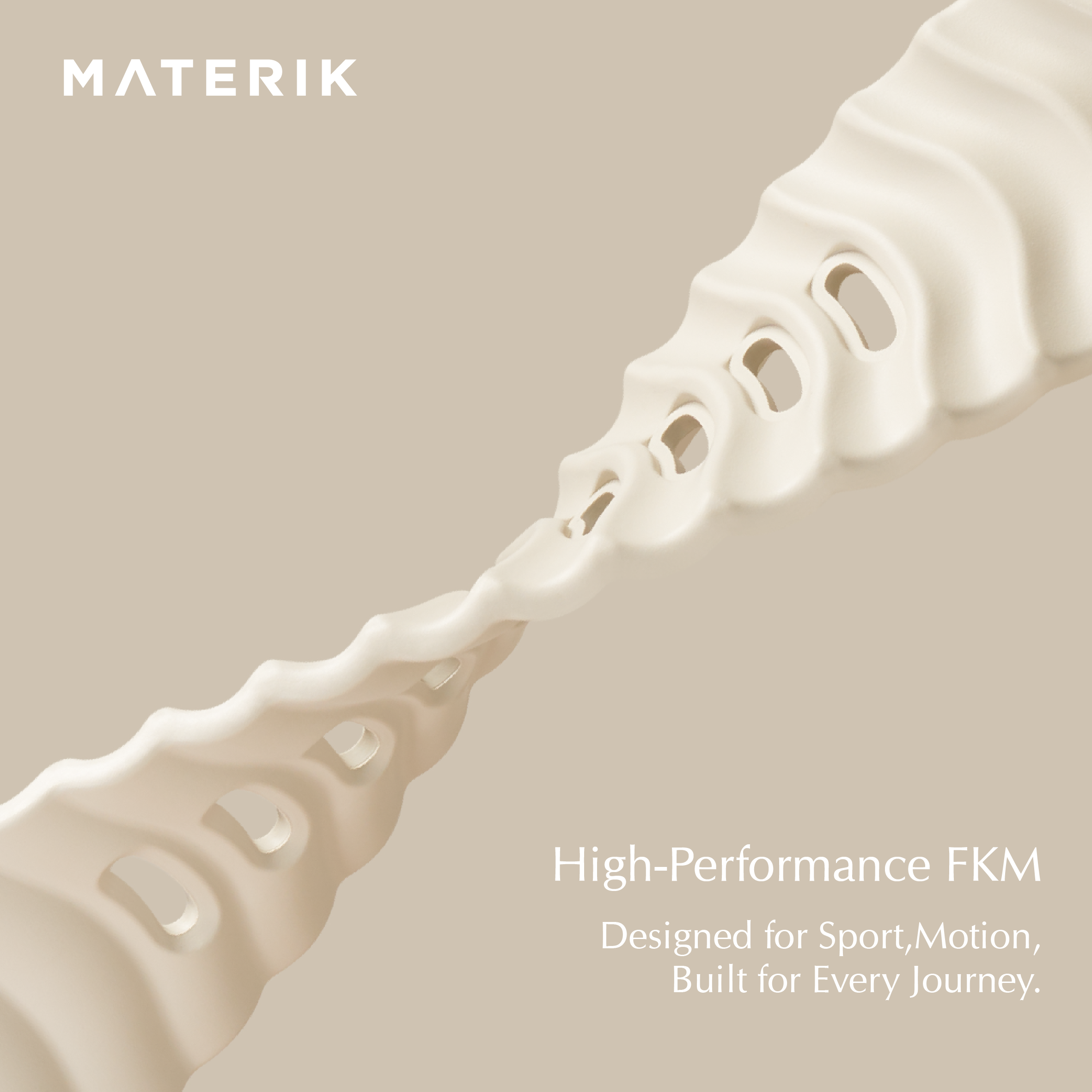 For this new chapter of watch band, crafted from premium FKM fluoroelastomer offers superior resistance to heat, sweat, UV rays, and environmental wear, ensuring the band maintains its rich matte texture and structure over time.