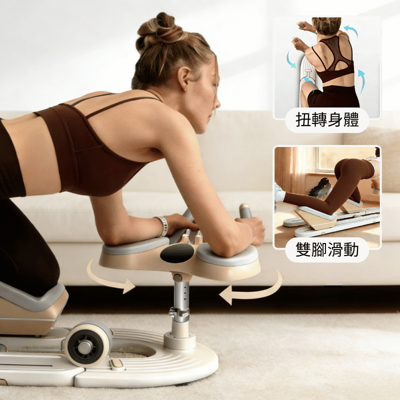 - 雙腳自然滑動 → 帶動核心肌群,強化腹部穩定支撐