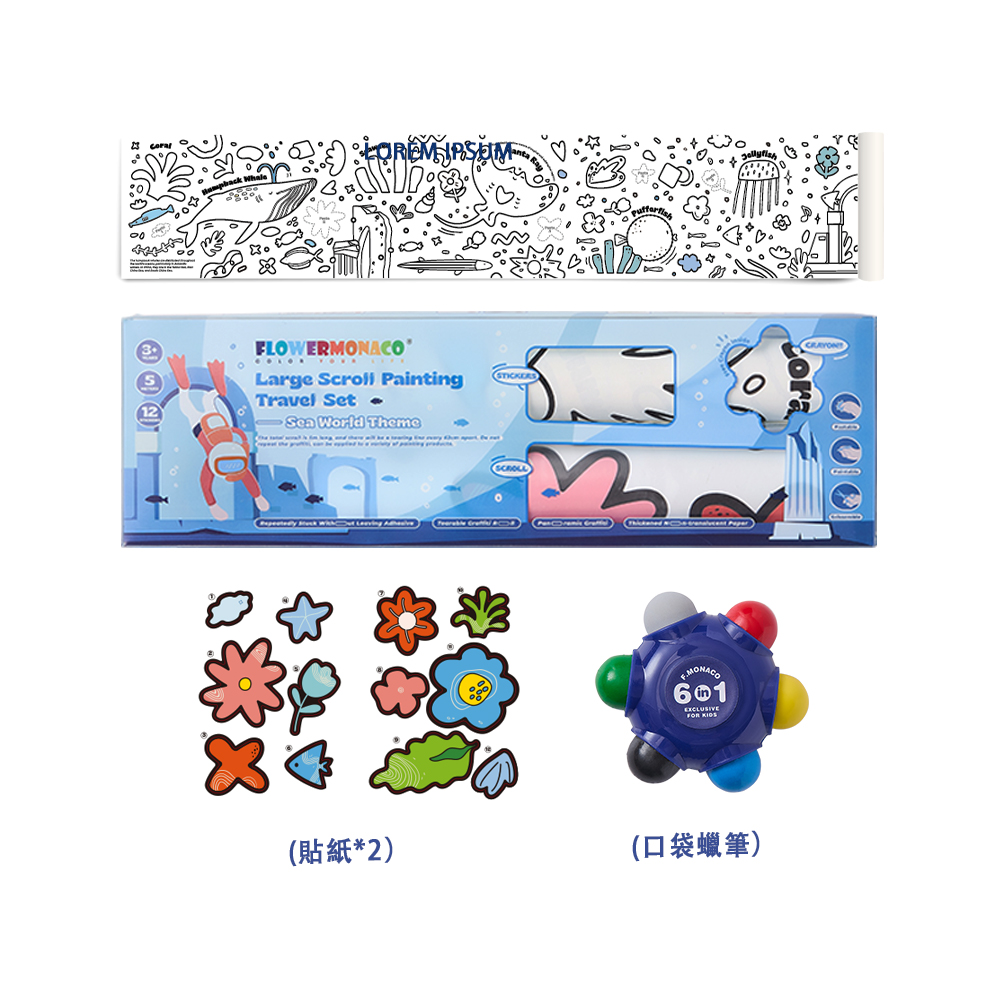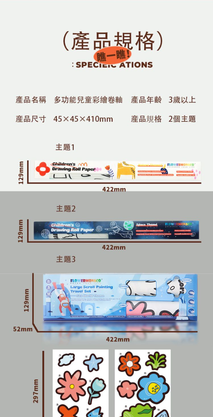 | 主題 | 太空, 自然, 海洋款(附贈口袋蠟筆及貼紙) |