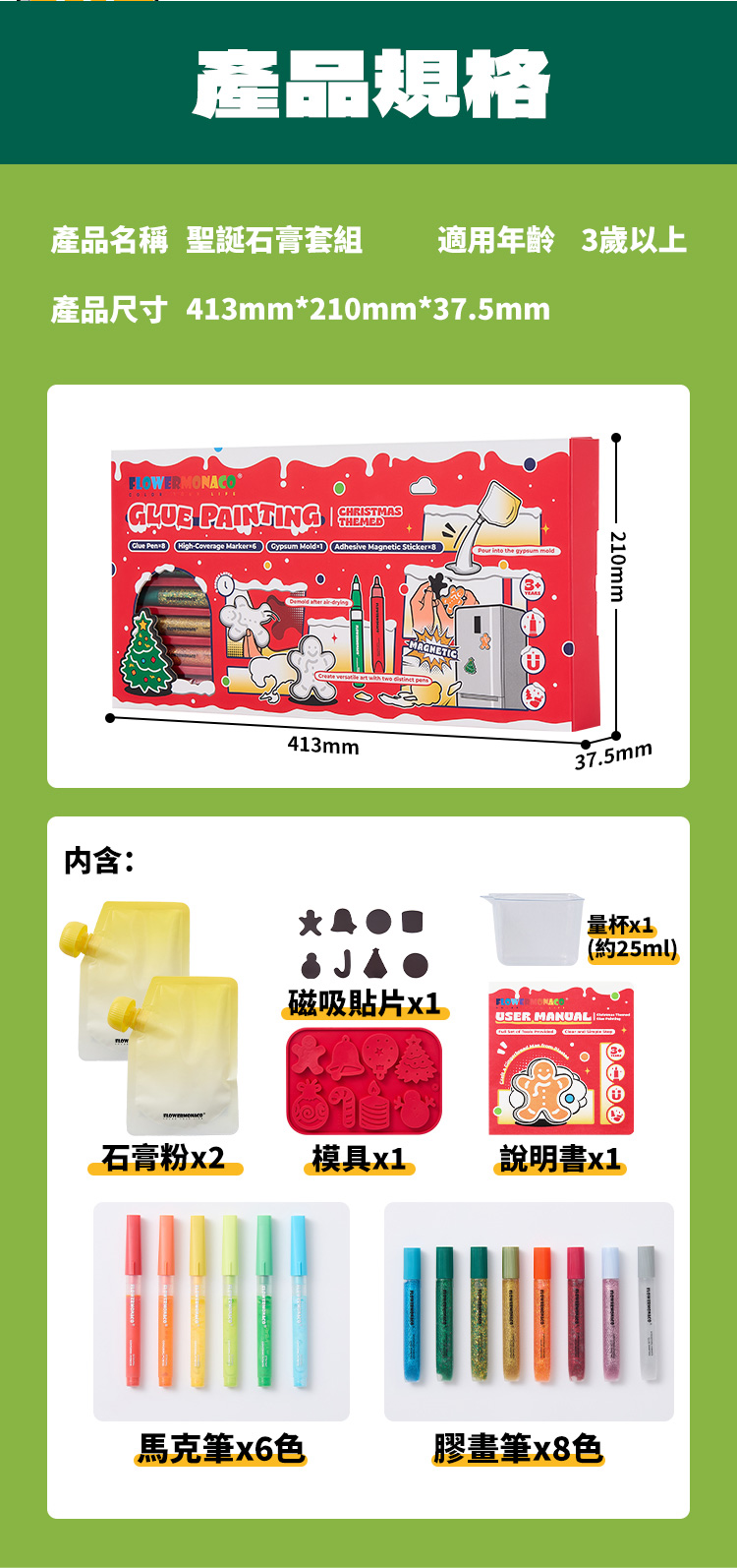 工具齊全超省心:石膏粉*2、模具*1 量杯*1 磁吸貼片*1