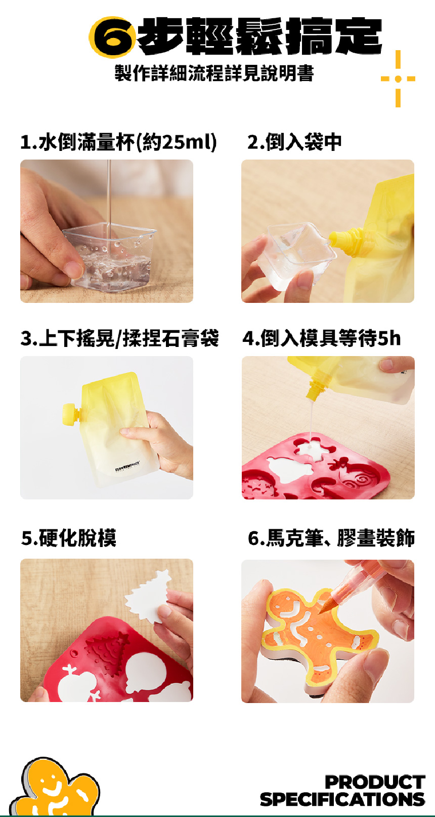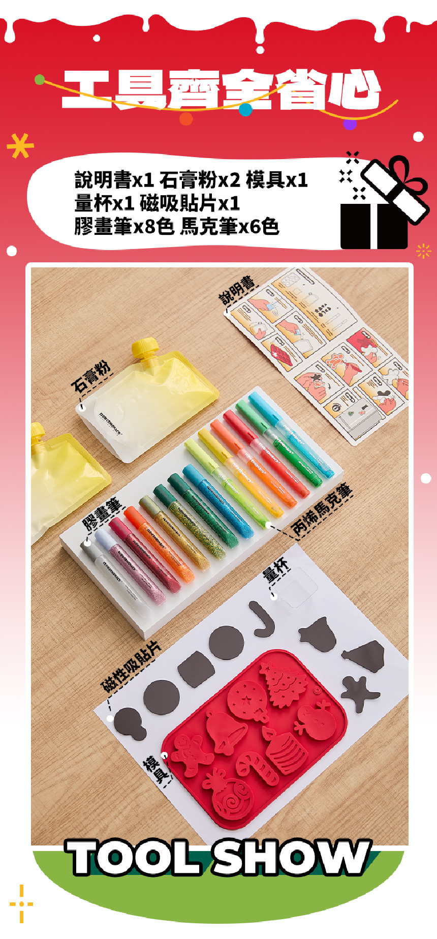 工具齊全超省心:石膏粉*2、模具*1 量杯*1 磁吸貼片*1
