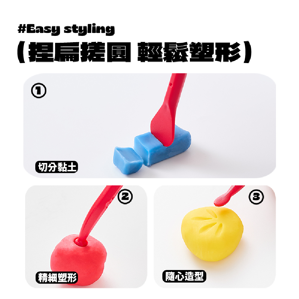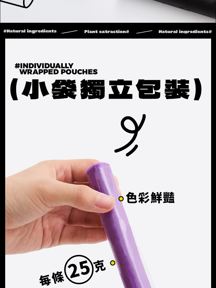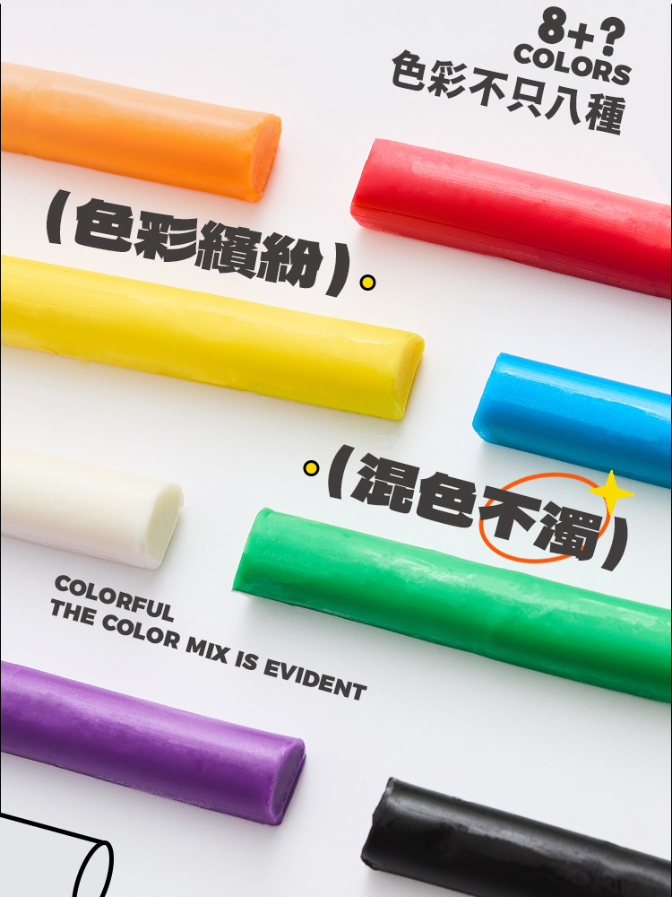 8色黏土、小袋獨立包裝,可混色變換更多色系