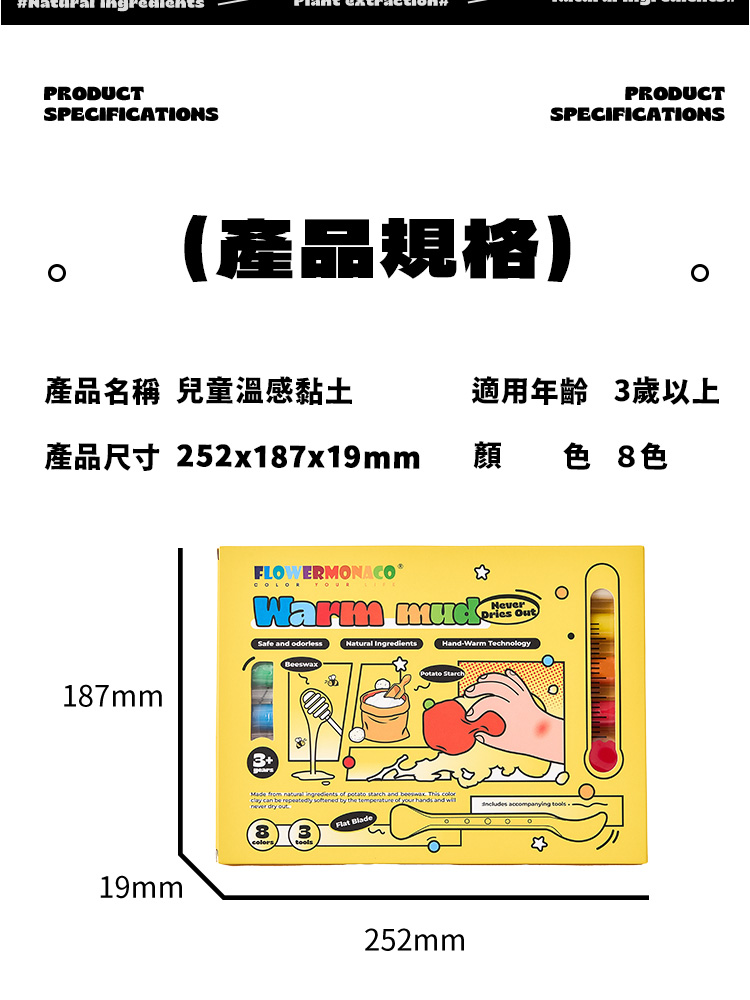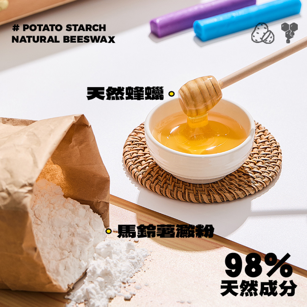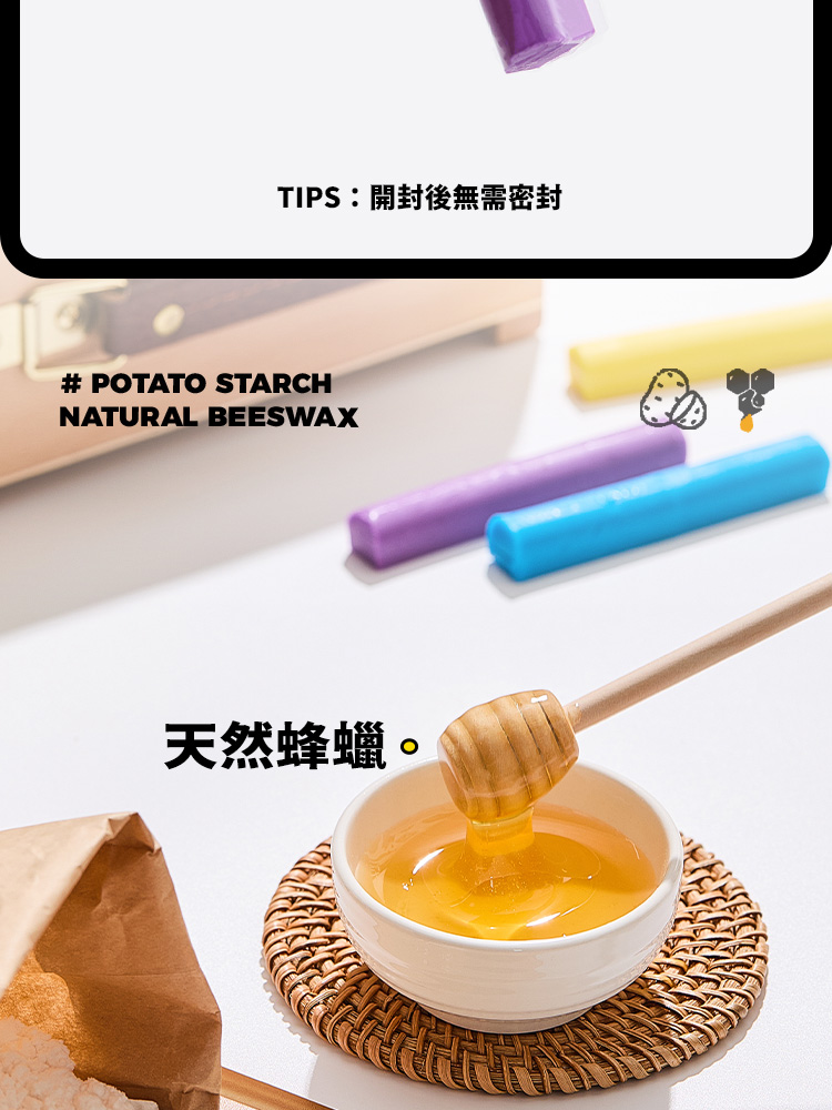 使用天然蜂蠟、馬鈴薯澱粉製成,天然又安全