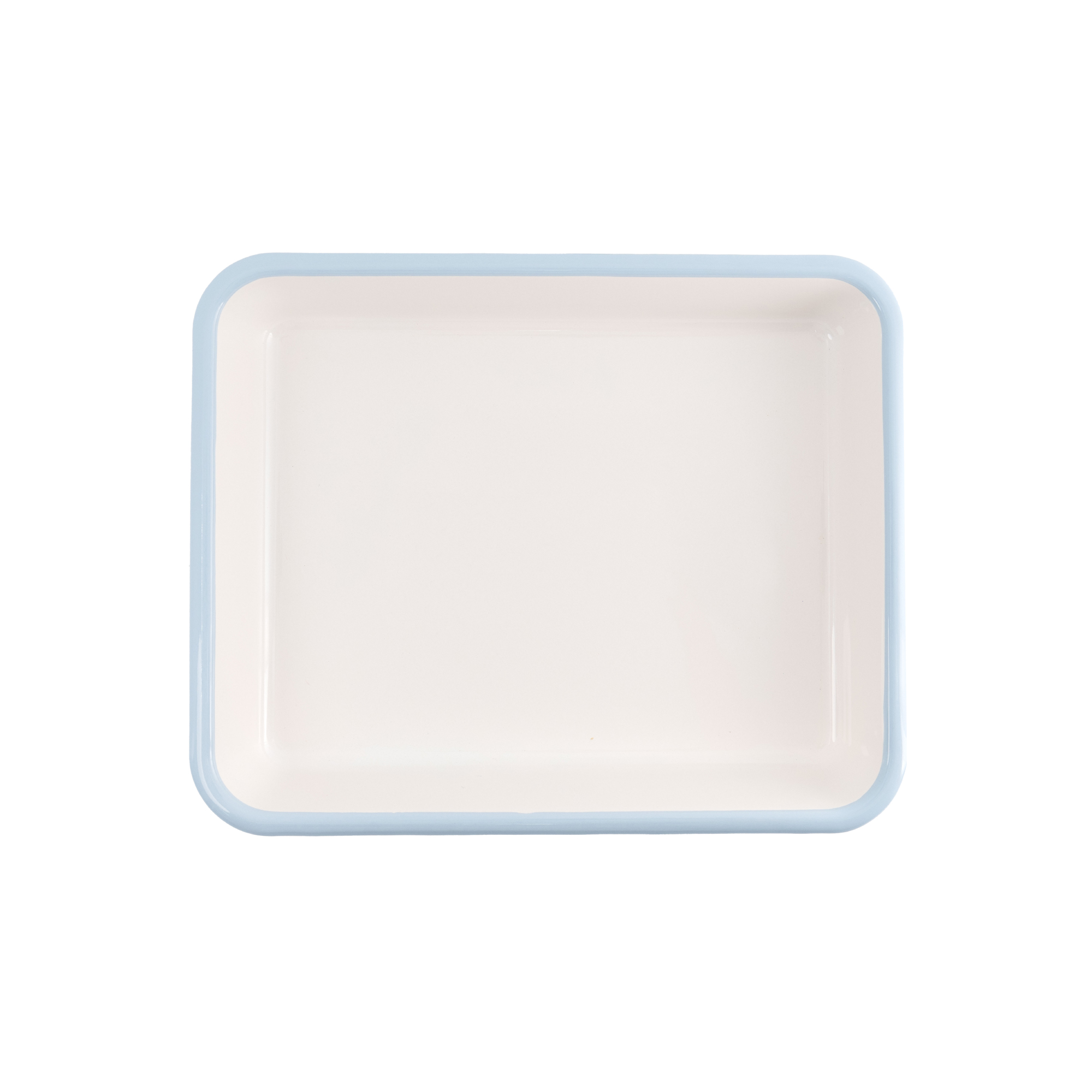 無論是烤焗烘焙、派對小食拼盤、甚至預備食材都能做到的琺瑯鋼焗盤!淺藍色的釉為焗盤帶來不一樣的美感。萬用的盤子有三個尺寸可供選擇,適用於各種用途。而日本製的玻璃面釉令焗盤容易洗滌,經久耐用。