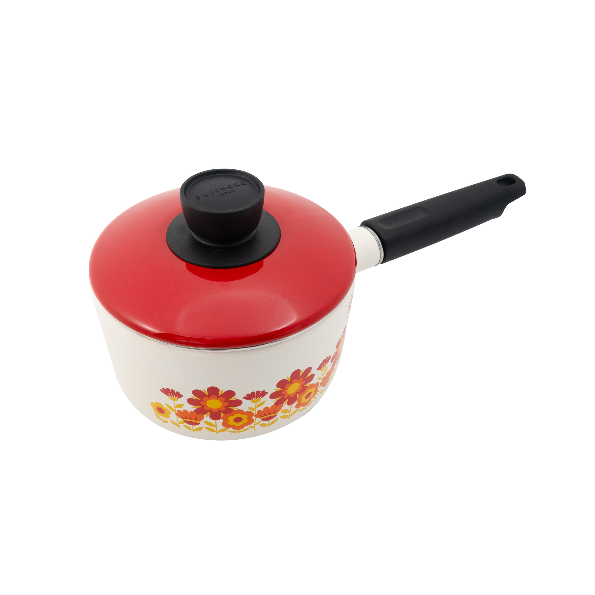 FUJIHORO復刻經典再現眼前!讓人心曠神怡的花朵圖案,鮮艷的紅黃配色,令廚房變得更歡樂!外觀與內涵俱備,FUJIHORO以高品質的日本用料,加上70年燒製琺瑯的技藝,燒製出兼備「輕量化」、「熱傳導極優良」、「堅固耐用」的琺瑯鋼鍋具,將職人精神承傳下去。